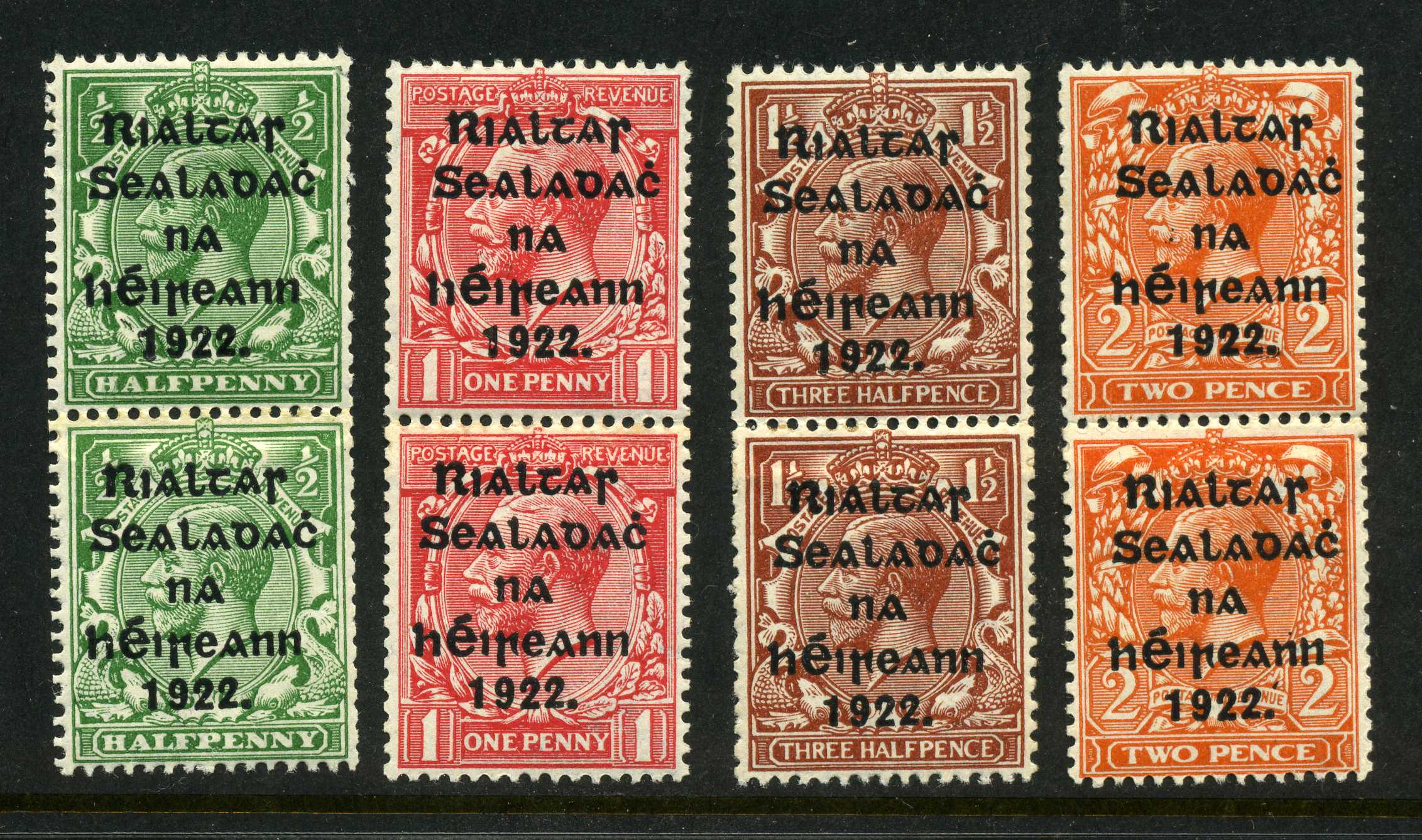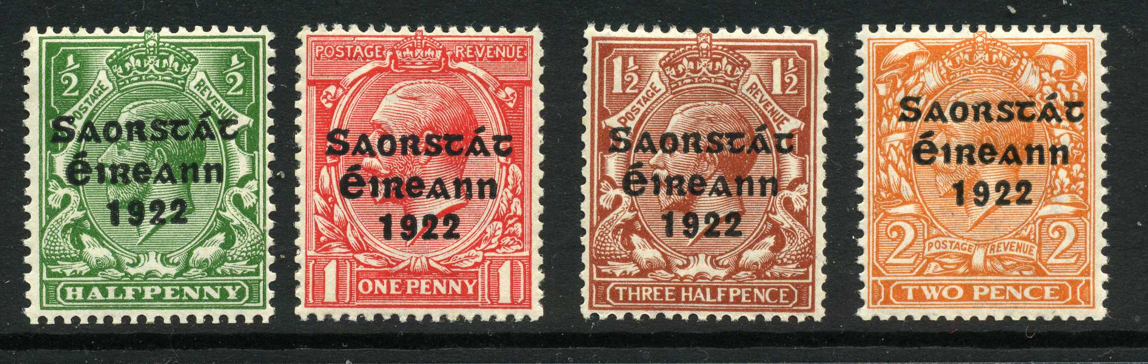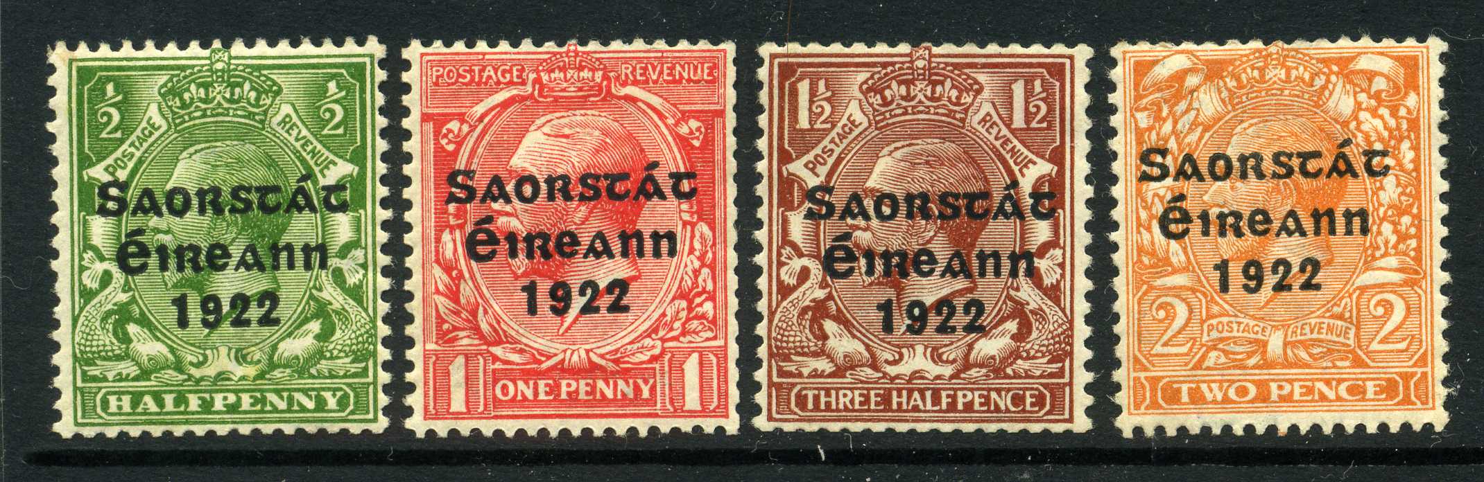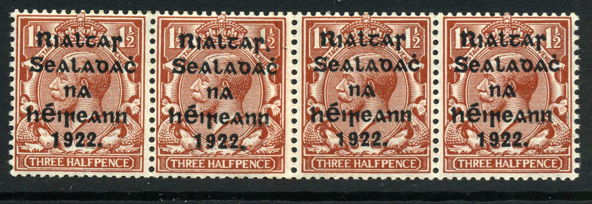 | 1922-3 Thom Saorstat ½d value unmounted mint block of four with overprint shifted to the very top of the stamp |