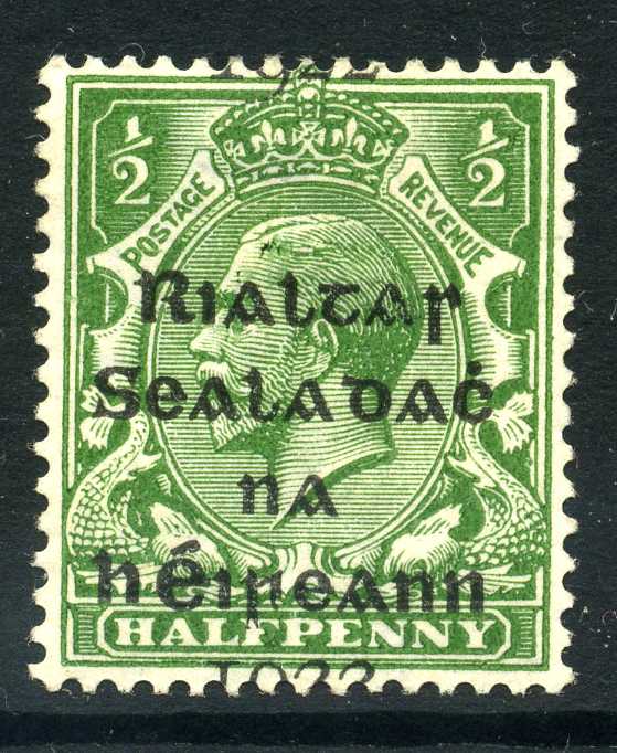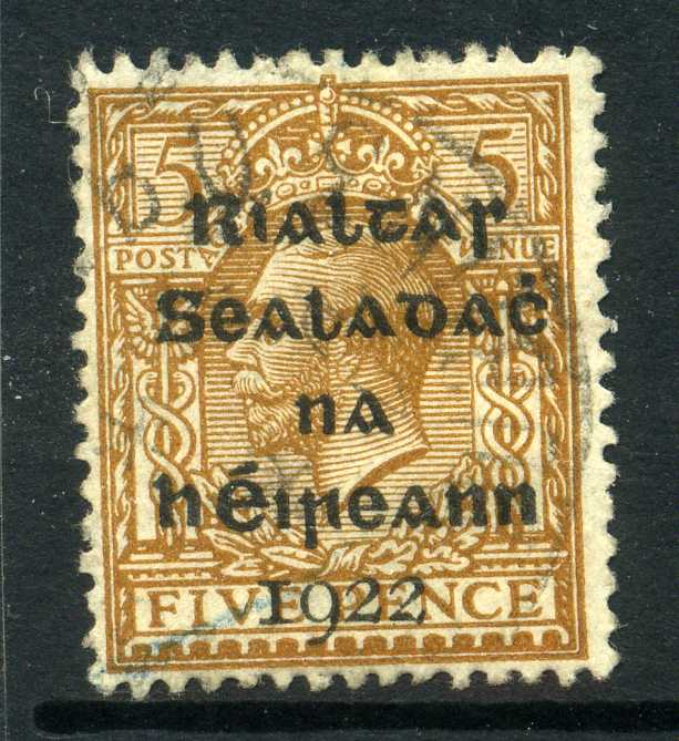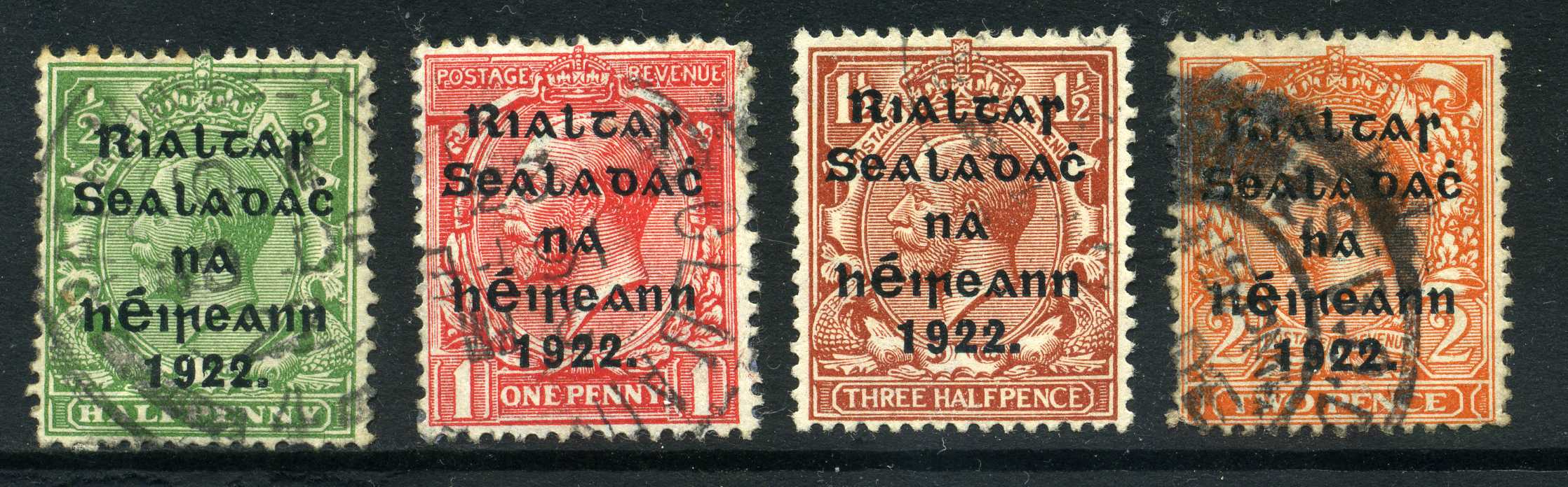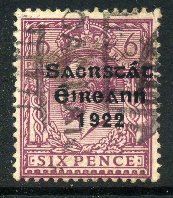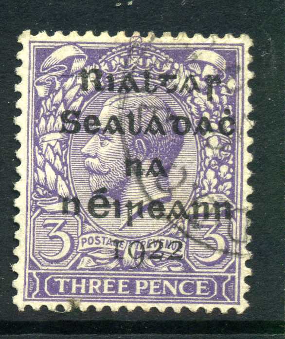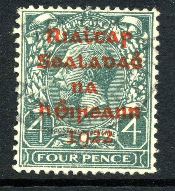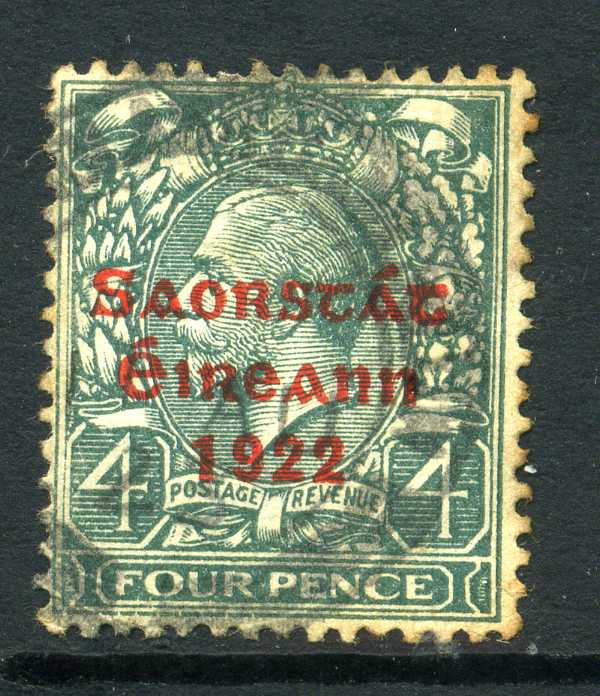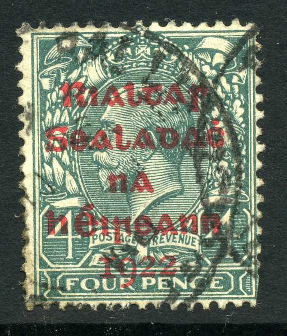 | 1922-3 Thom Saorstat 4d overprint cds used example with variety Breaks under Four, toned but a scarce stamp used. |