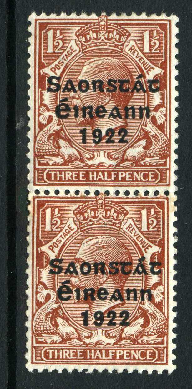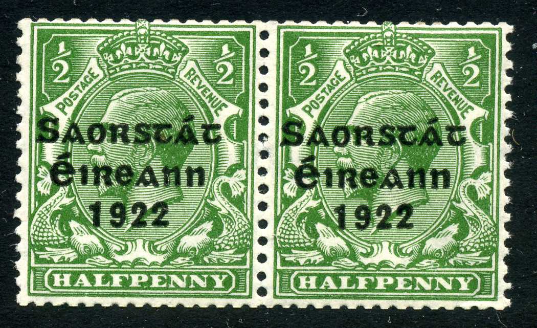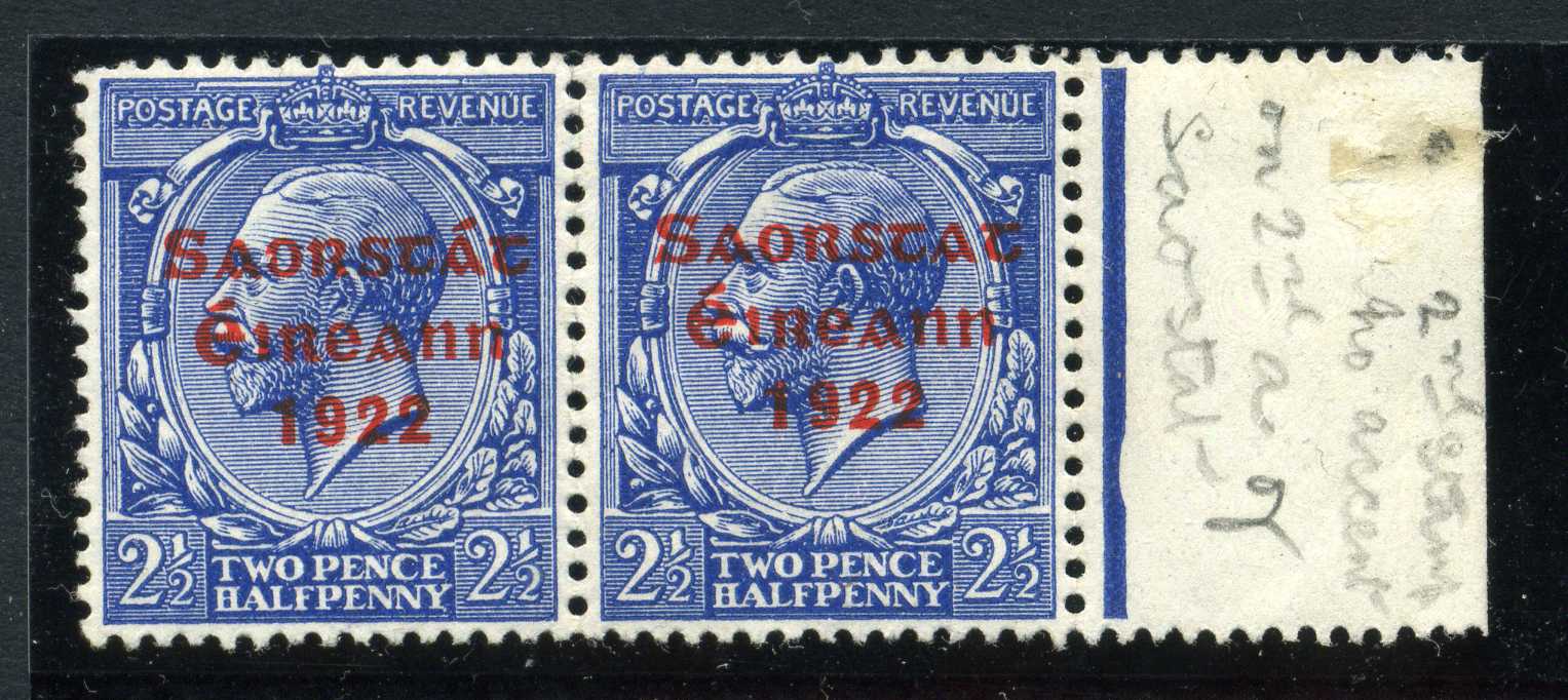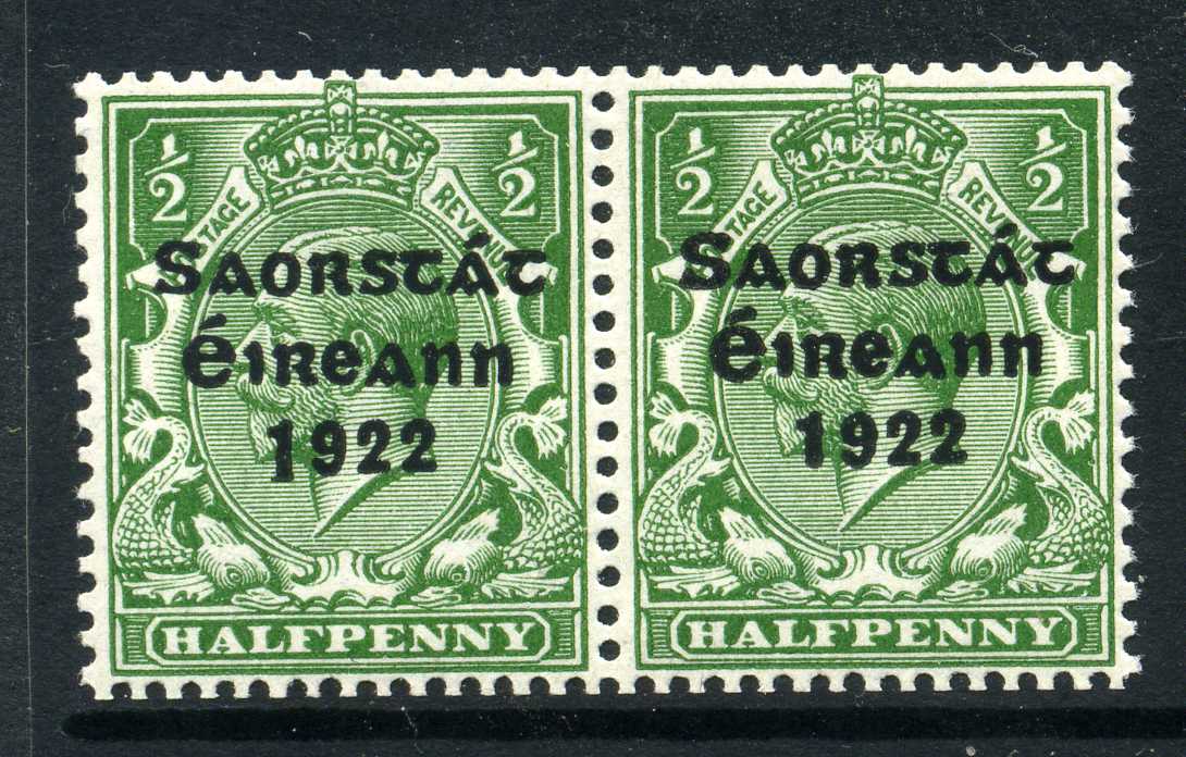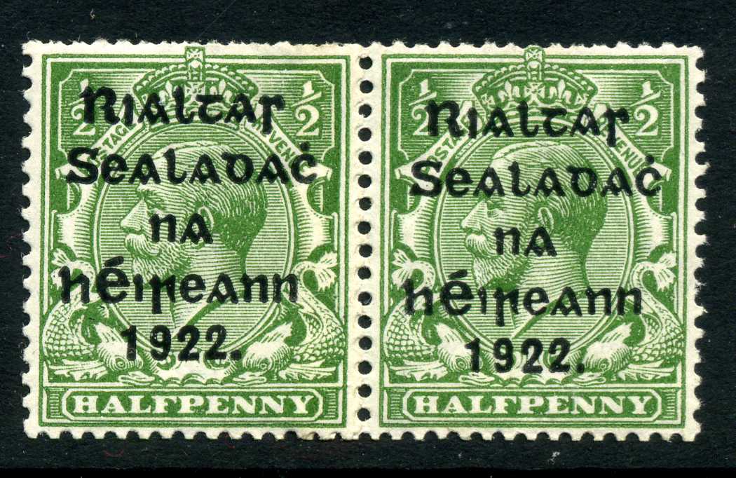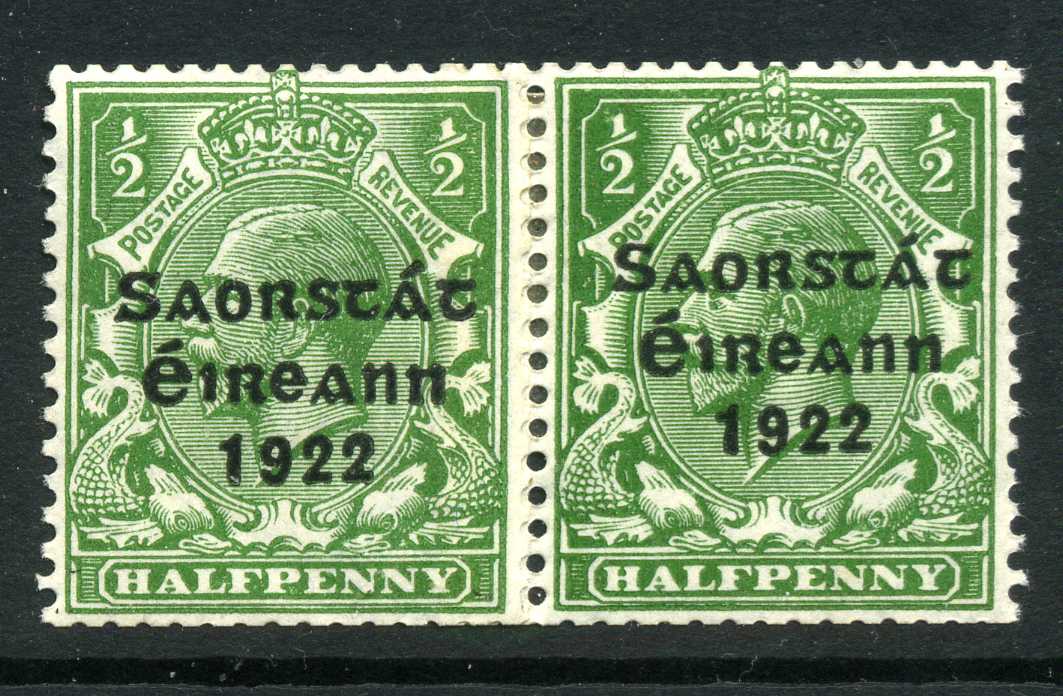 | 1923 Harrison Three Line Coil ½d value mint horizontal pair right stamp with Line over re of Saorstat. |