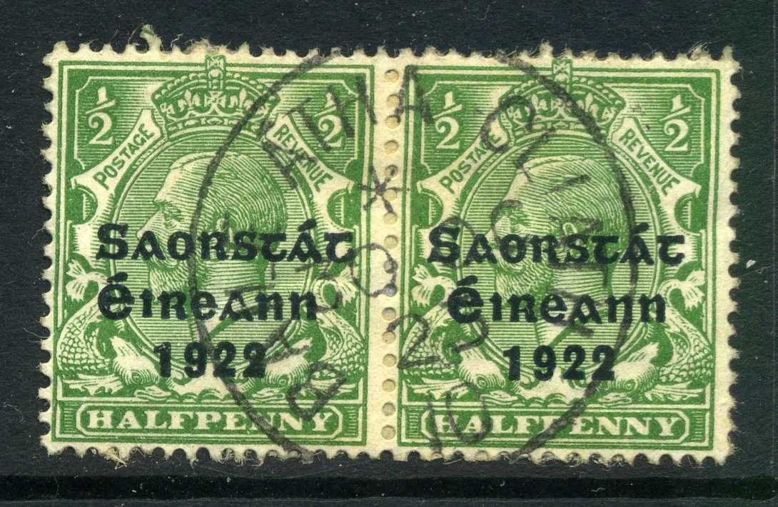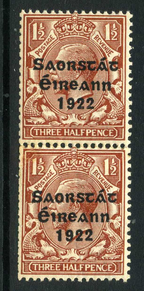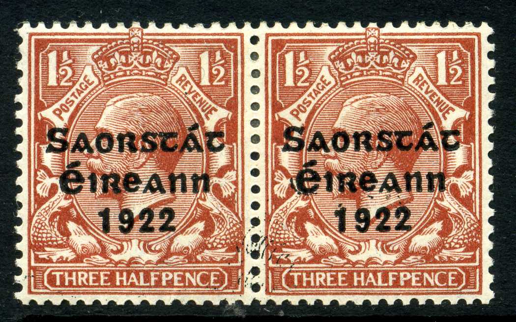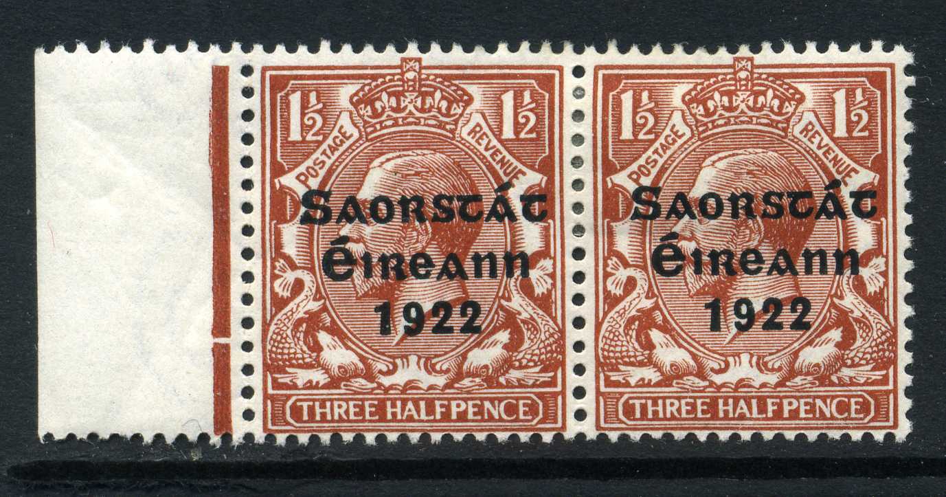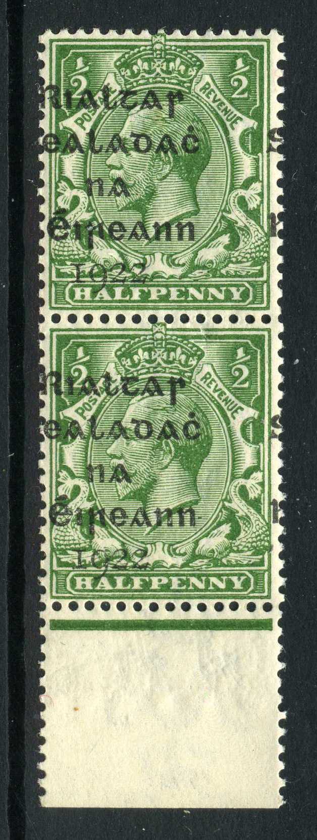 | 1923 Harrison Three Line Coil ½d value mint horizontal pair right stamp with Line over re of Saorstat. |