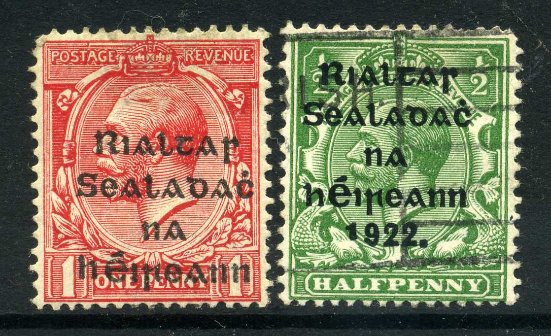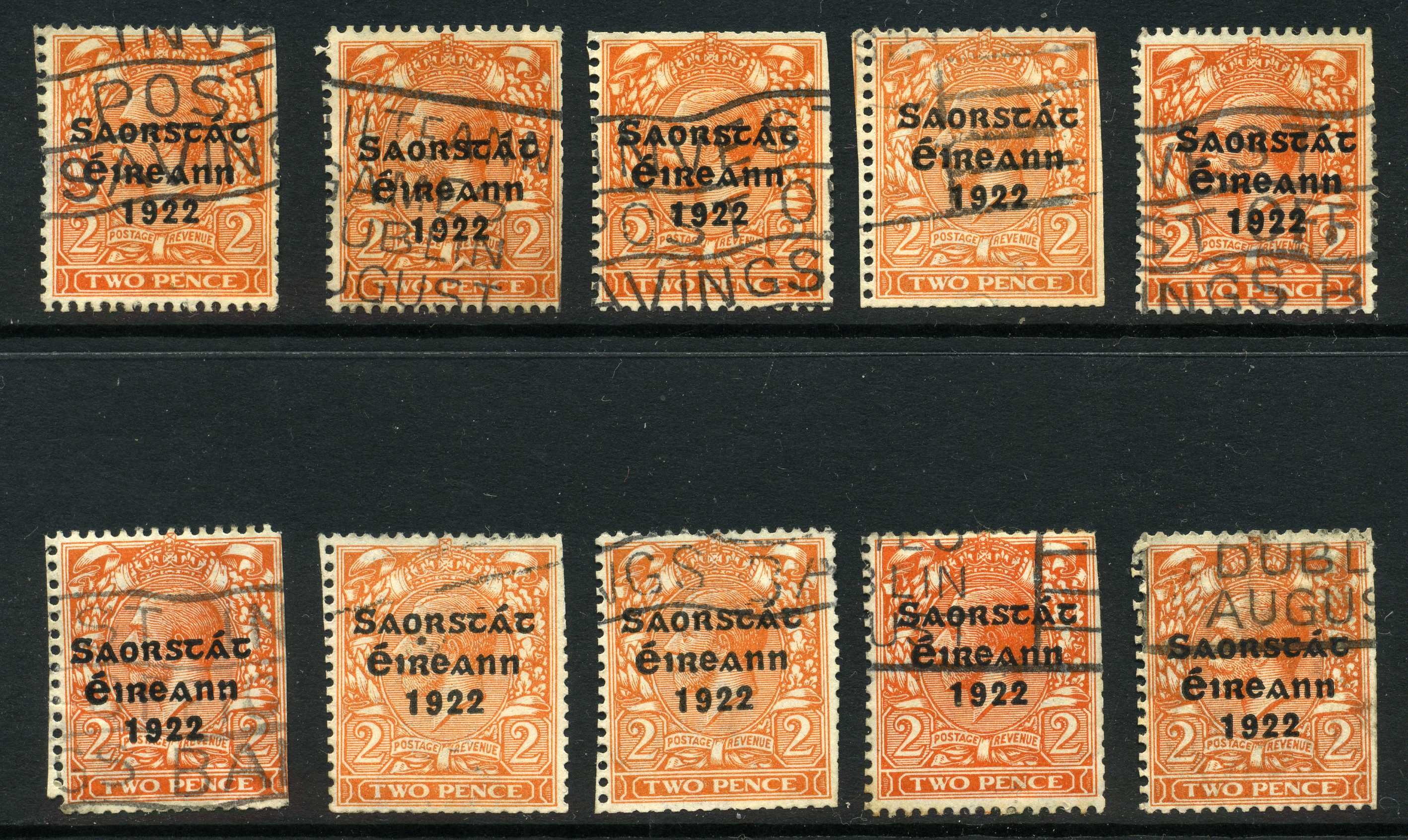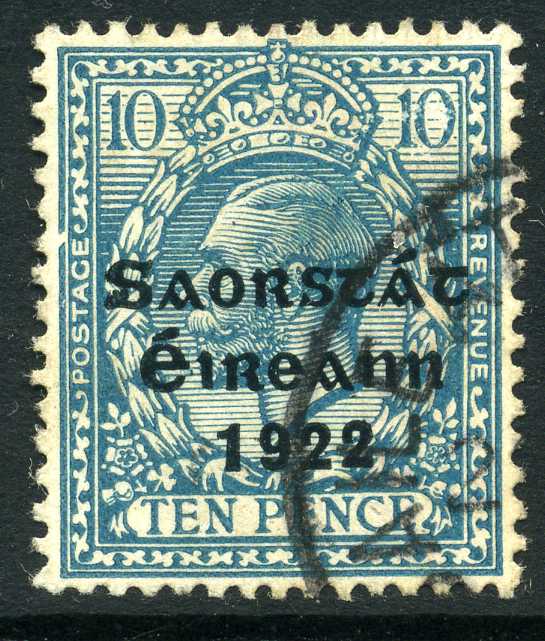 | 1922-3 Thom Saorstat 10d cds used with Broken Frameline variety. |