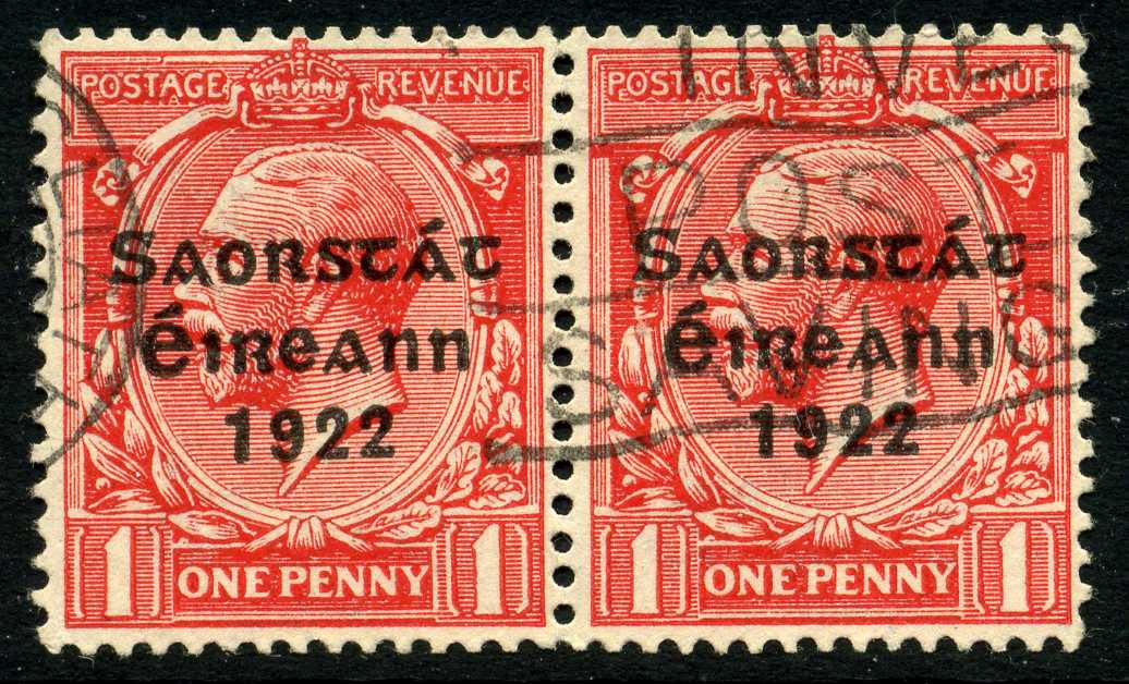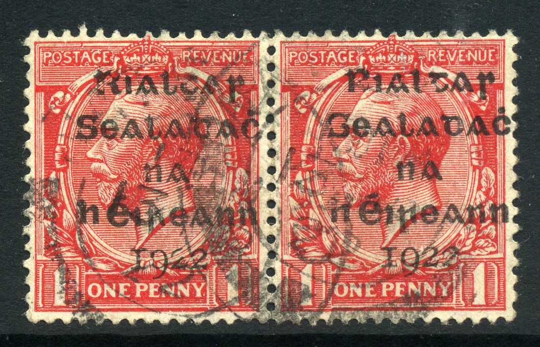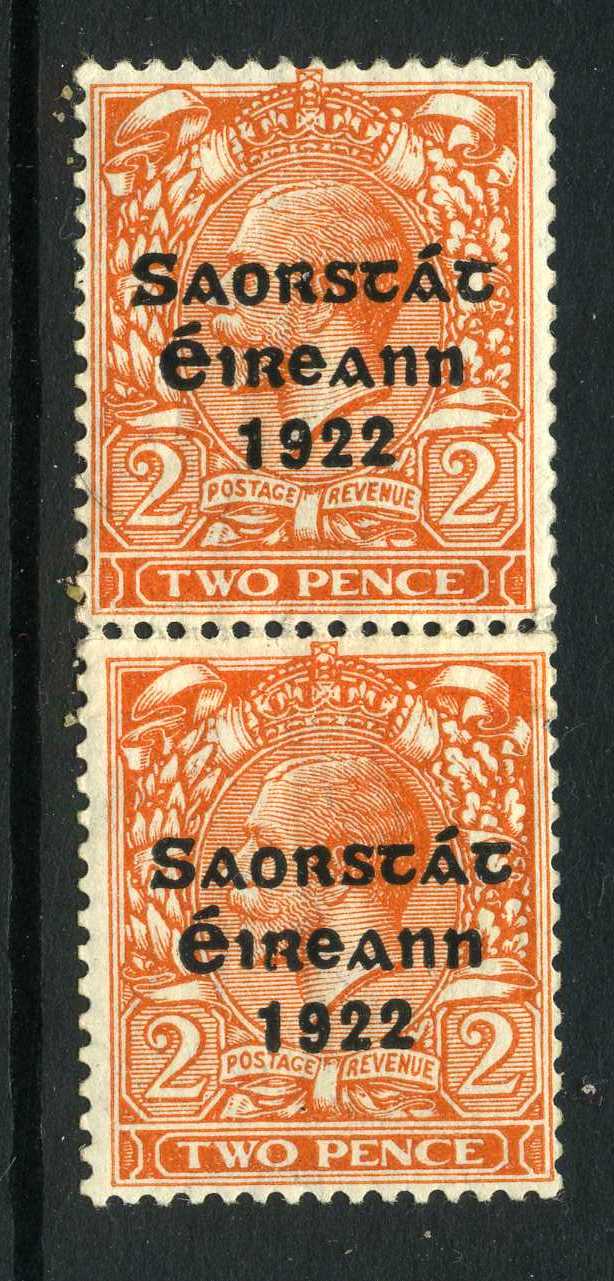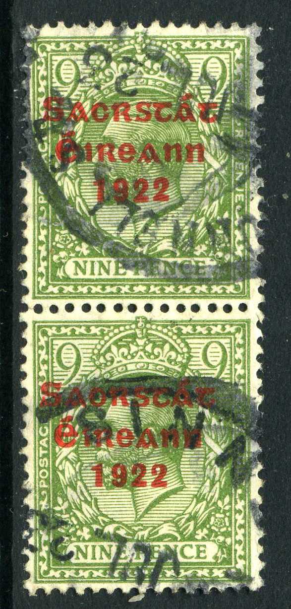 | 1922-3 Thom Saorstat 9d cds used vertical pair upper stamp with SACrstat variety |