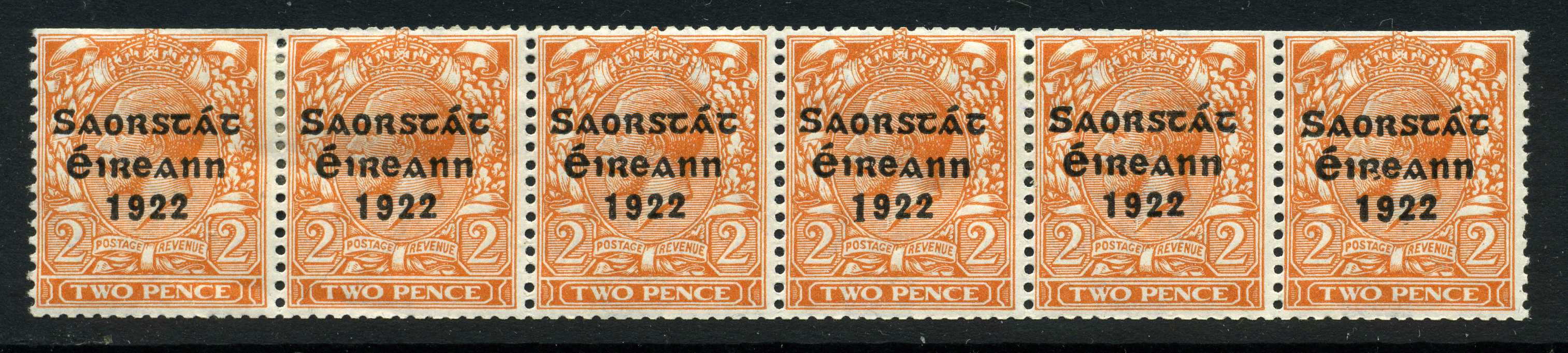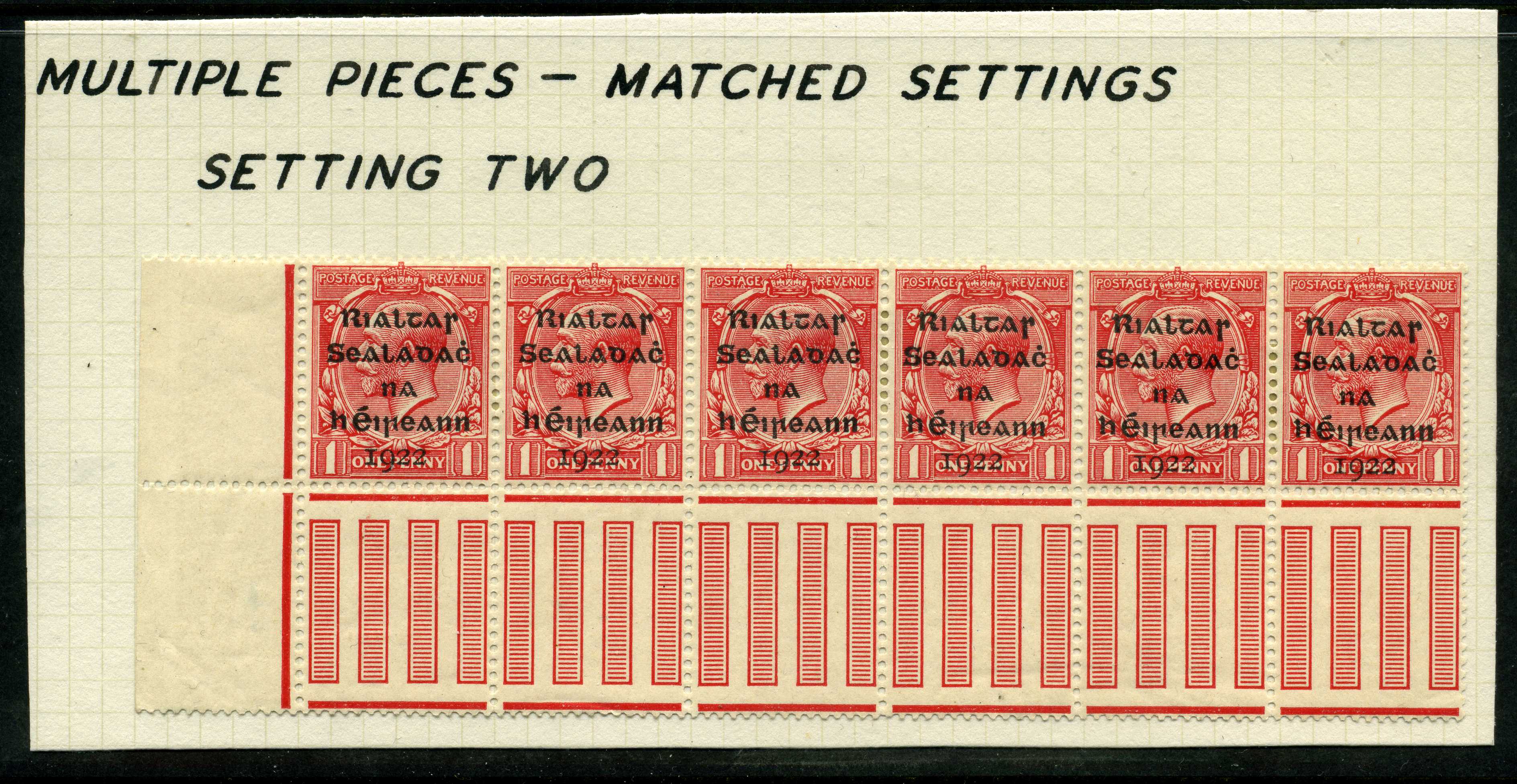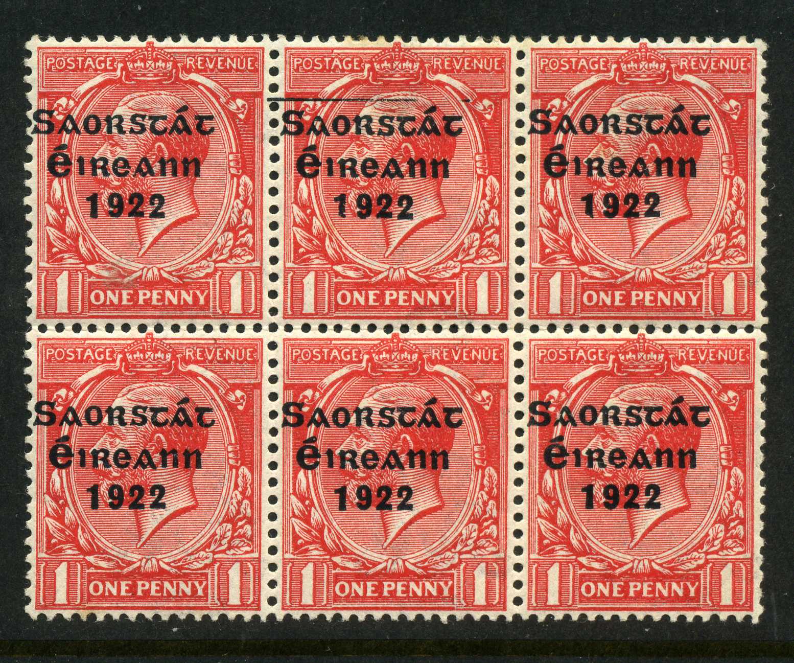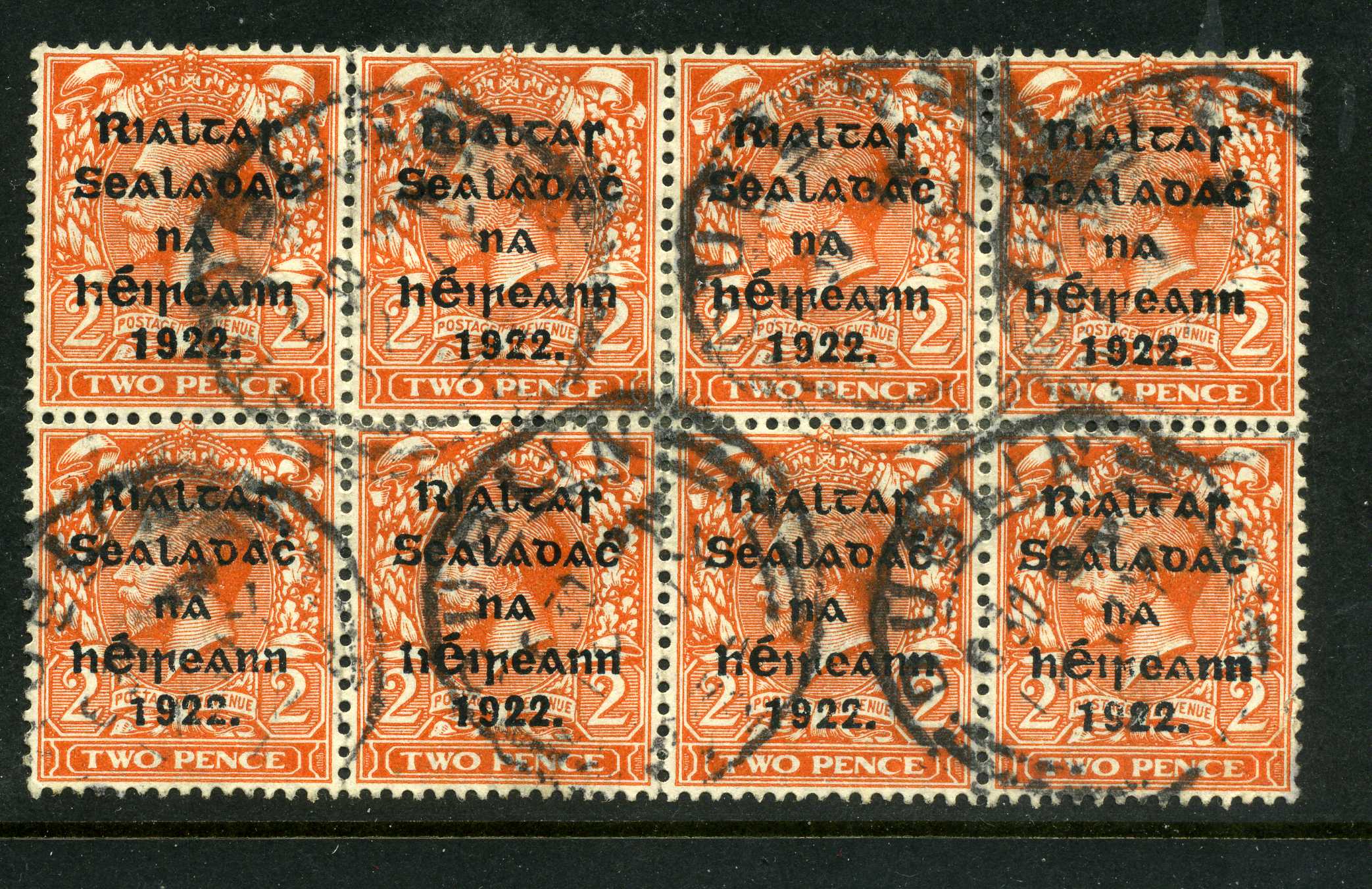 | 1922-3 Thom Saorstat 1 Shilling value unmounted mint block of 8 all with clear offset of overprint on reverse. |