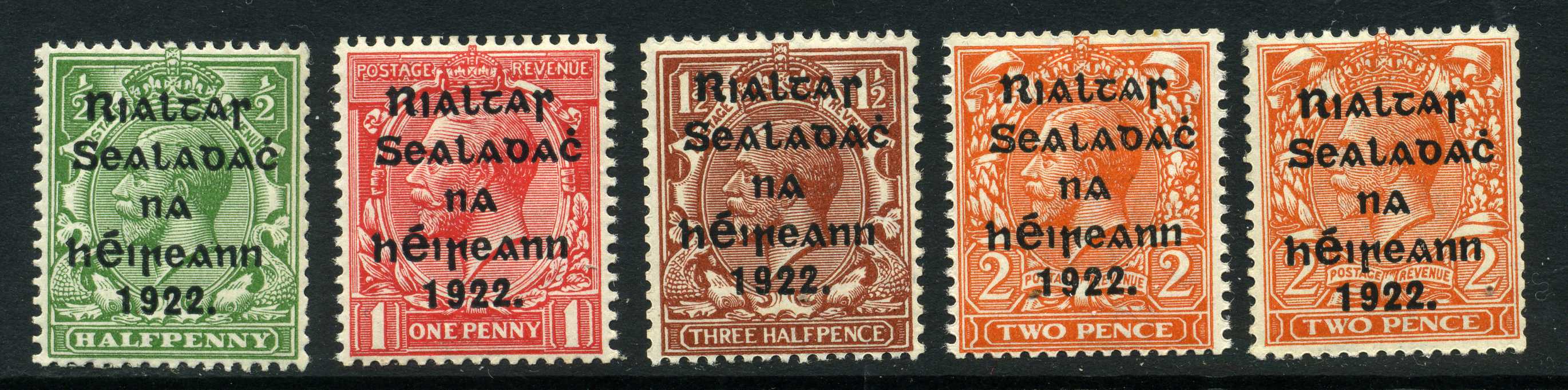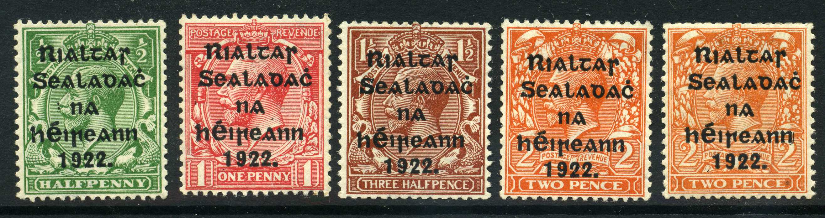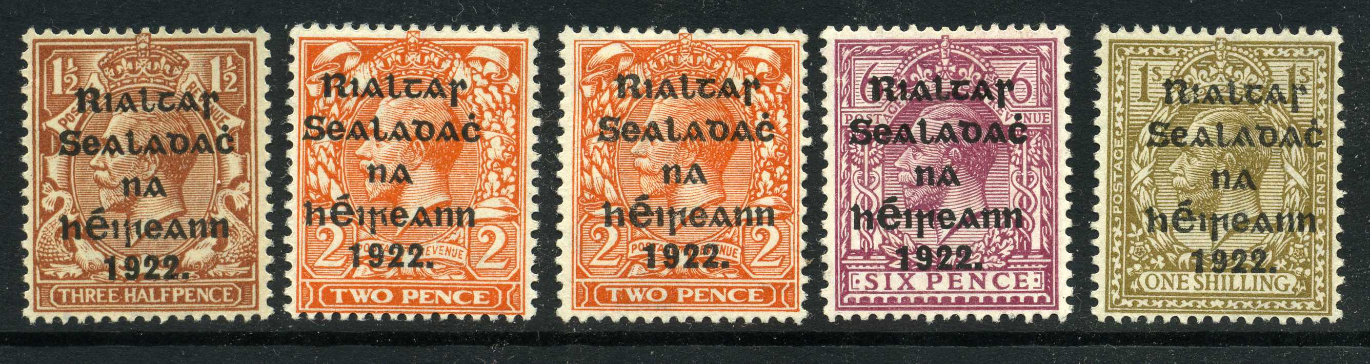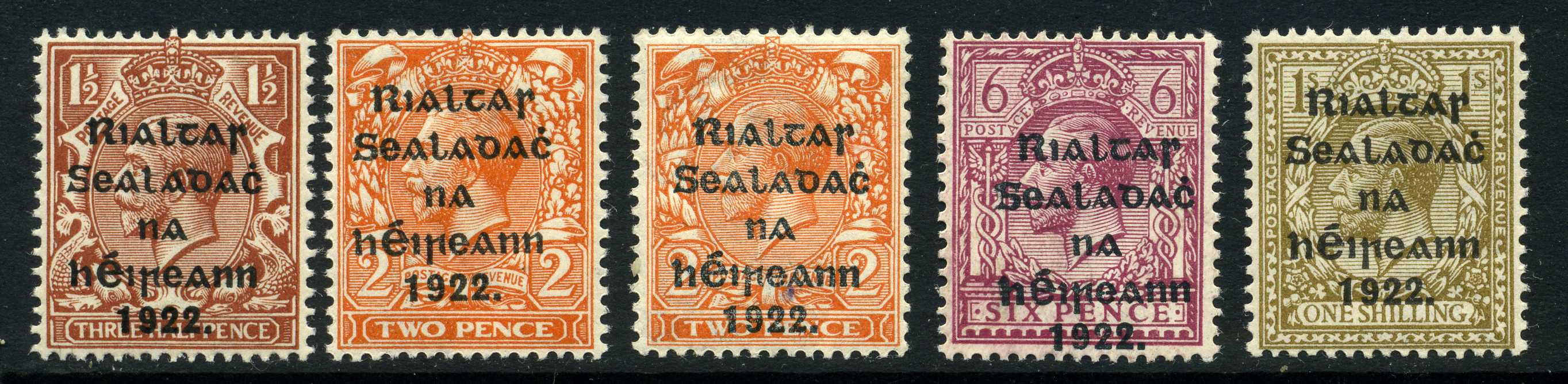 | 1922-3 Thom Saorstat 5d unmounted mint marginal block of 4 (1 hinged) lower right stamp with variety Dropped 2 in 1922. |