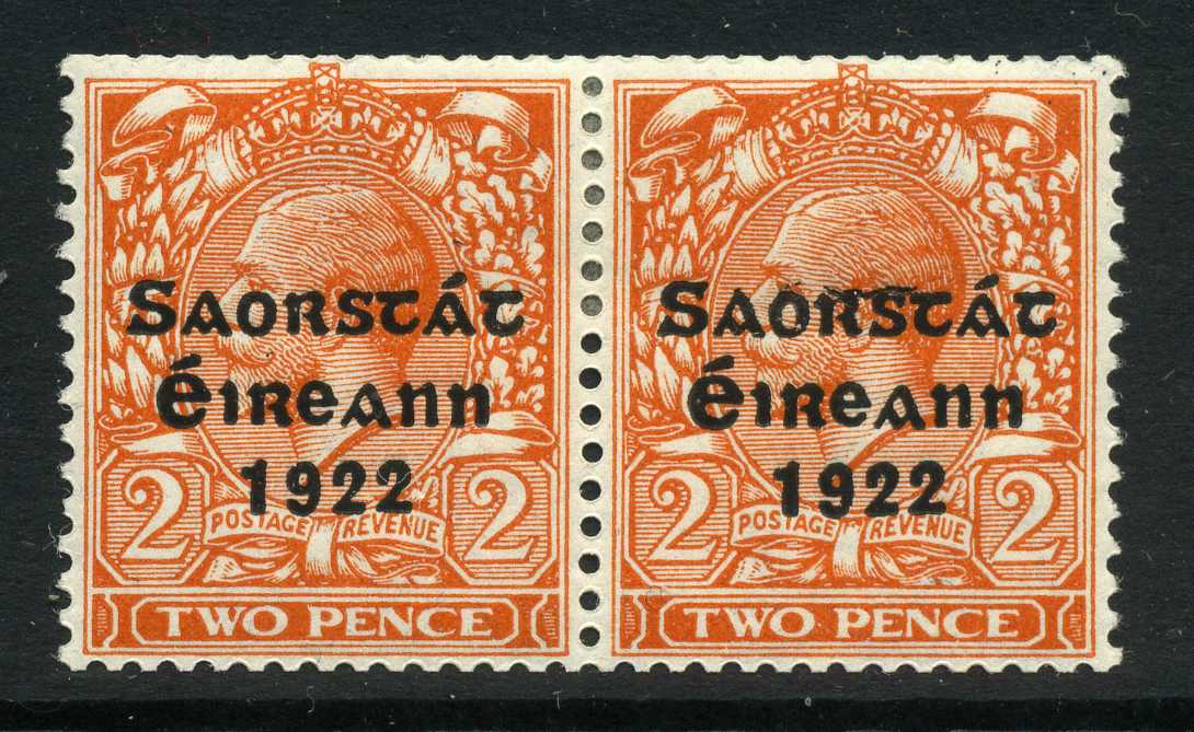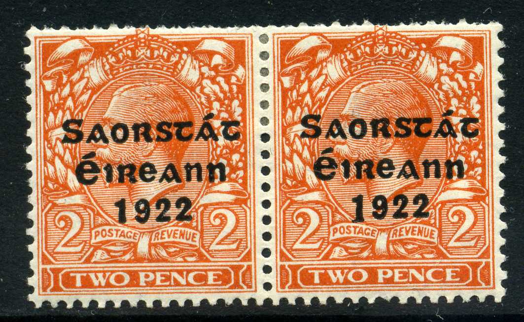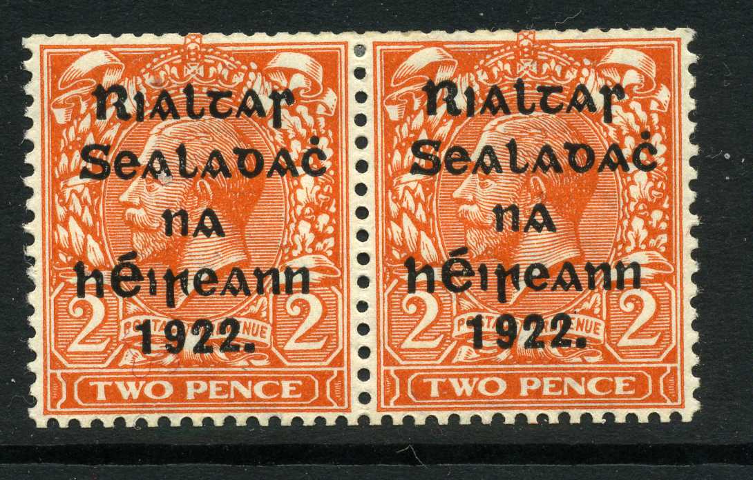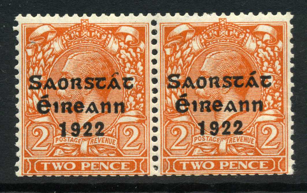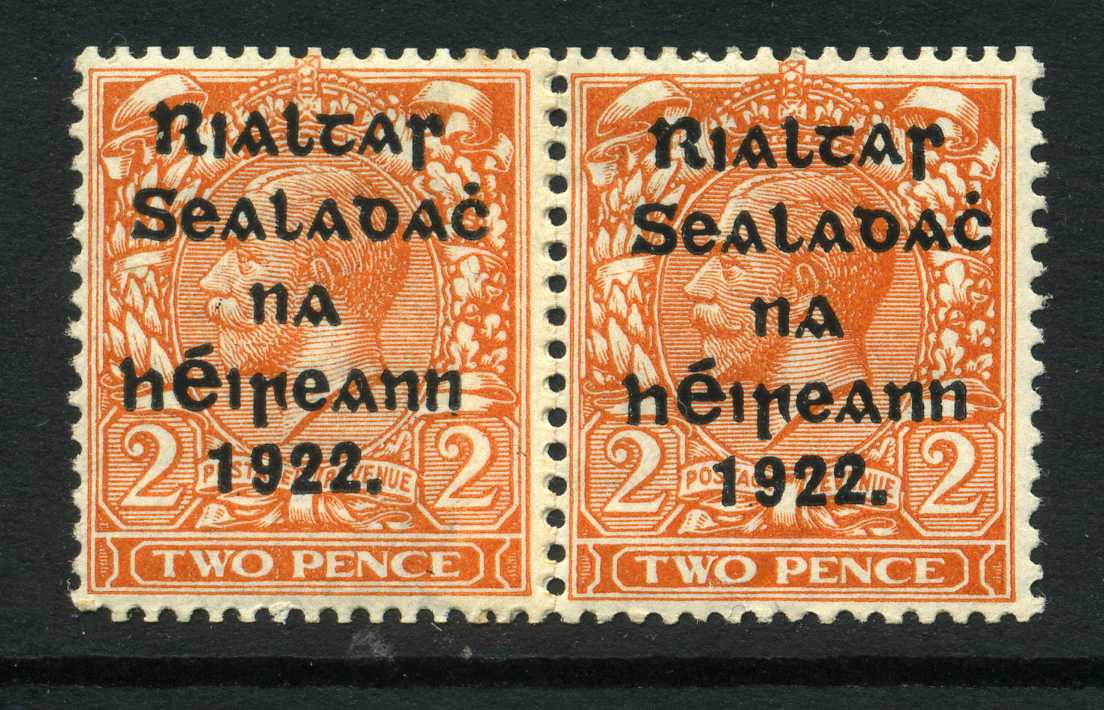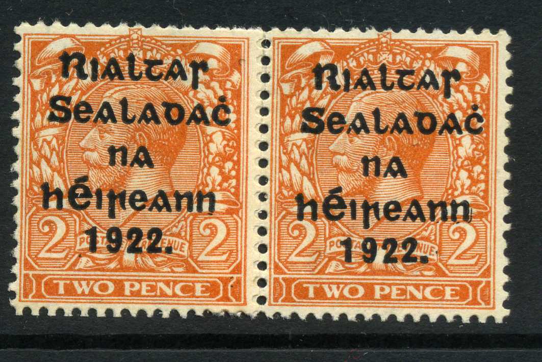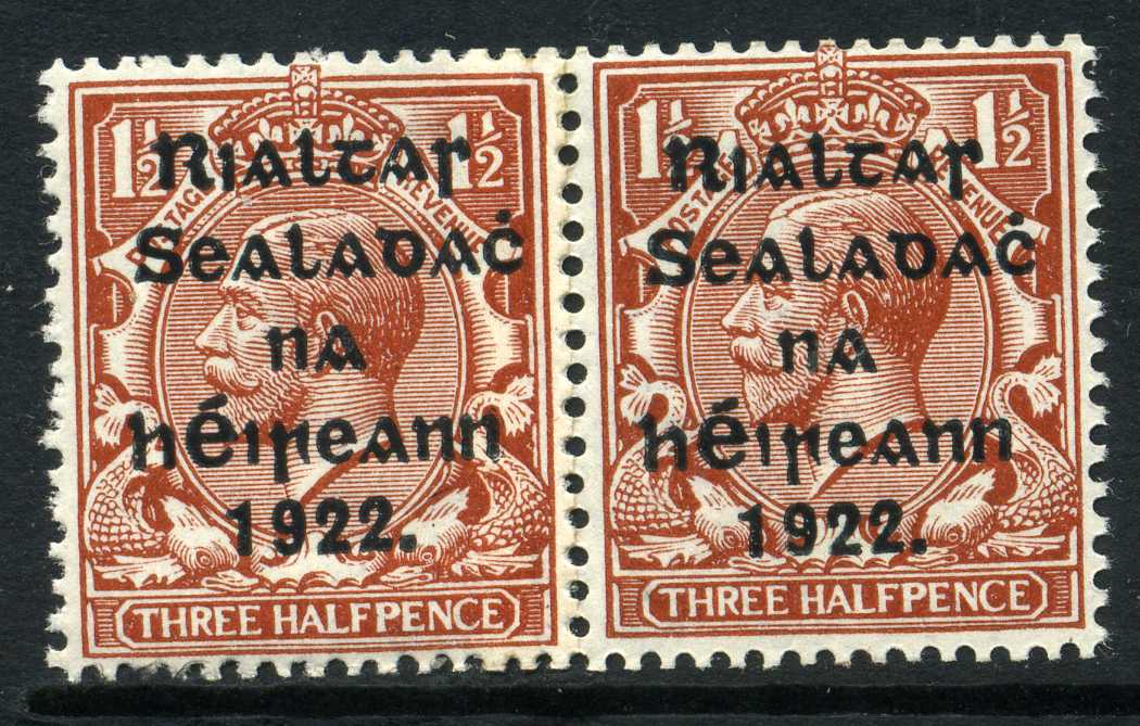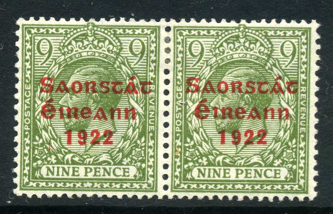 | 1922-3 Thom Saorstat 9d value fine mint pair one stamp with S over E variety. |