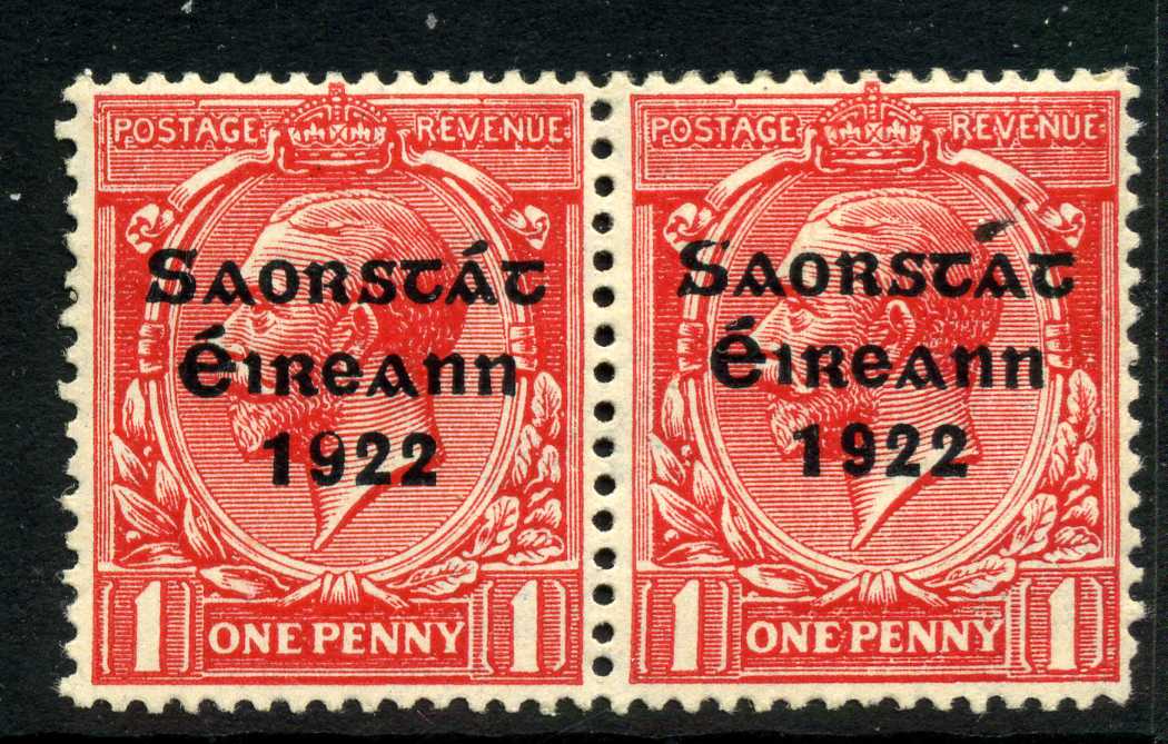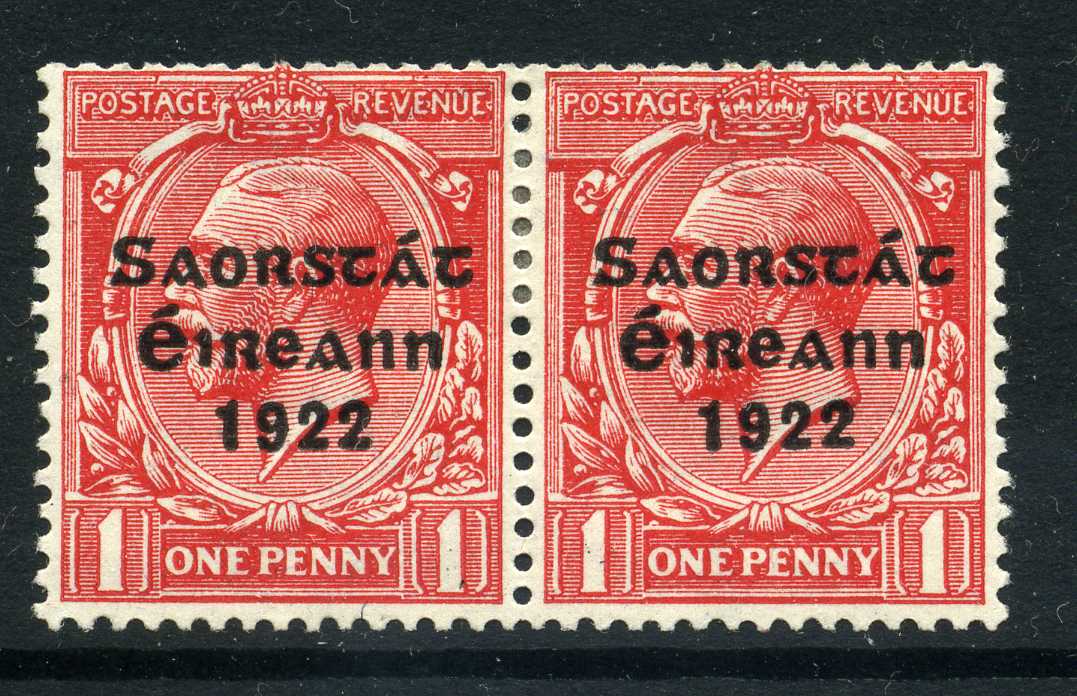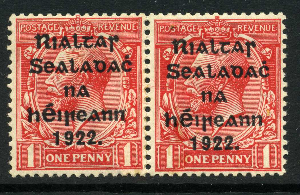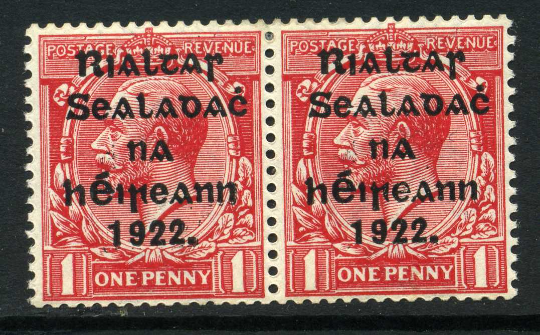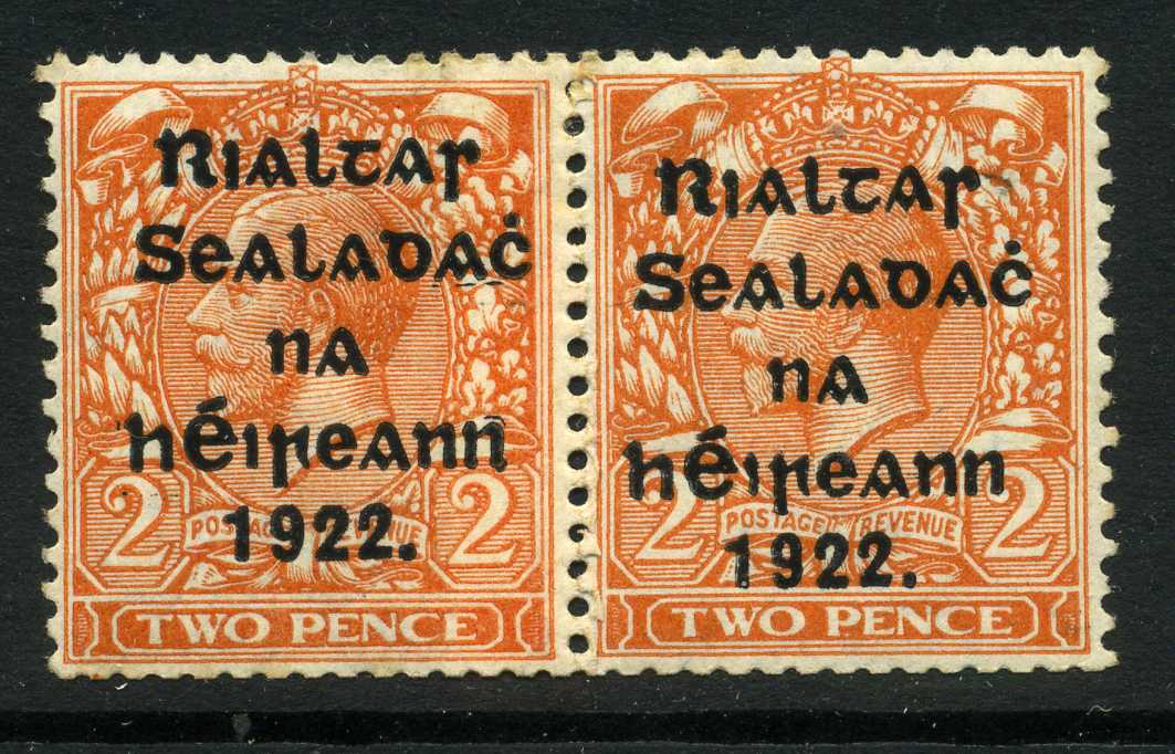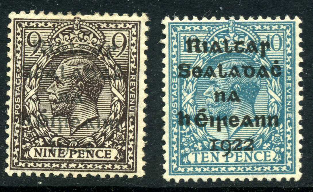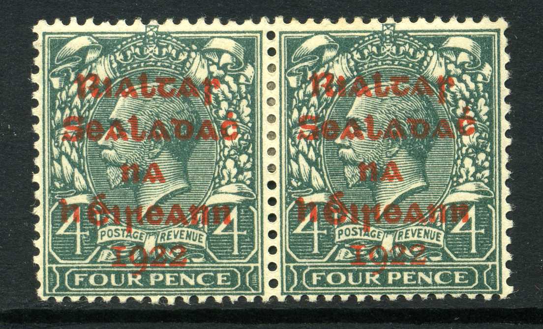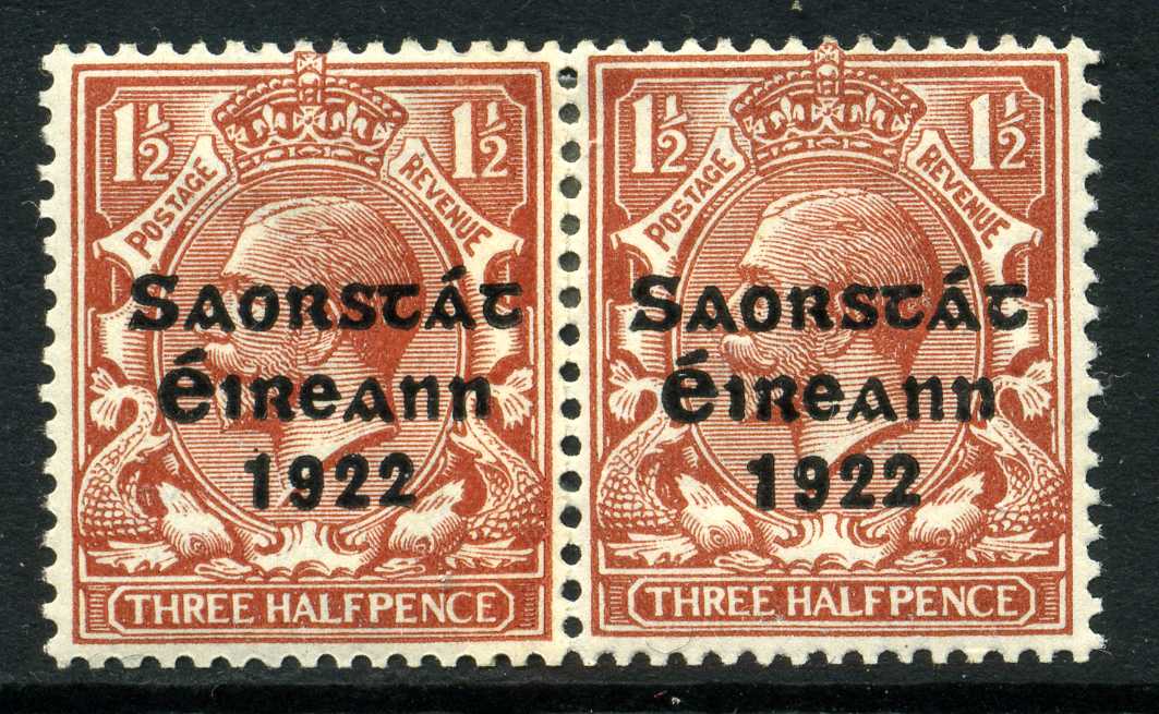 | 1922-3 Thom Saorstat 9d value fine mint pair one stamp with S over E variety. |