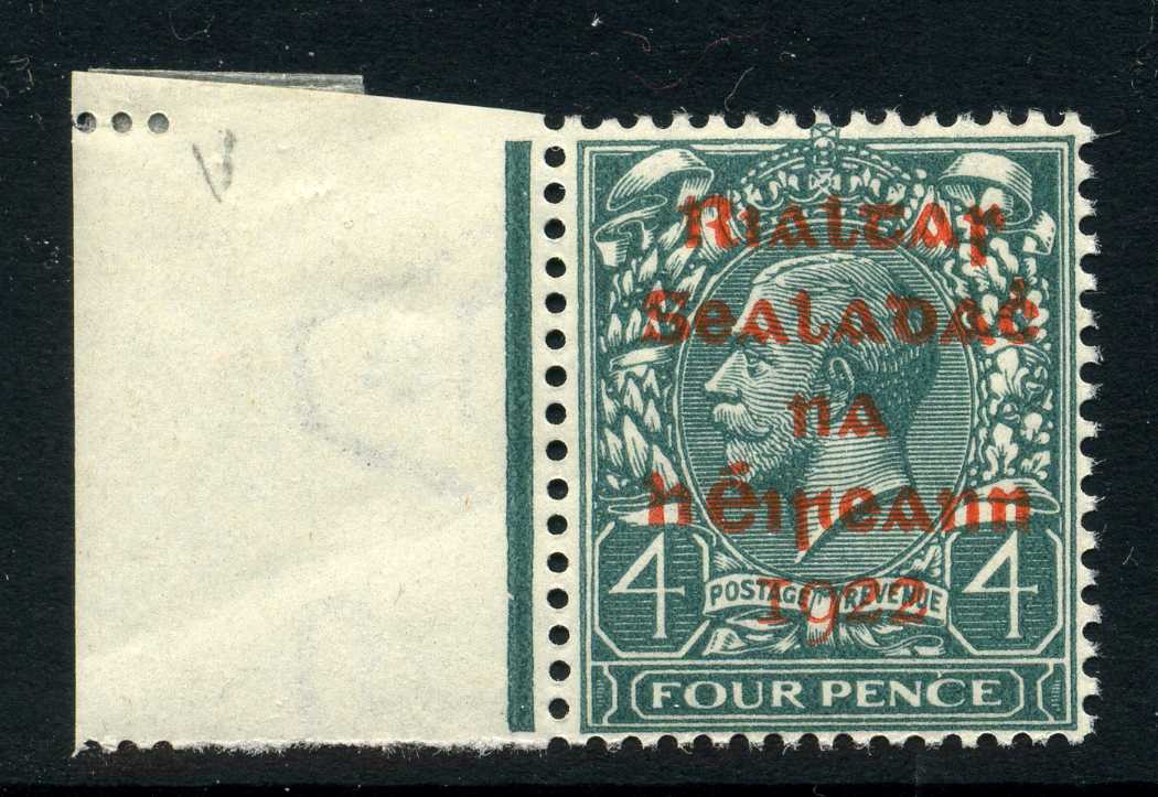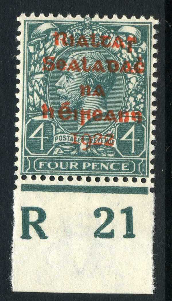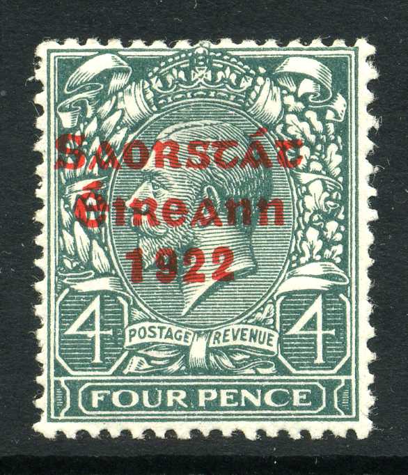 | 1922-3 Thom Saorstat 4d fine mint example with variety Broken Crossbar on 4. |