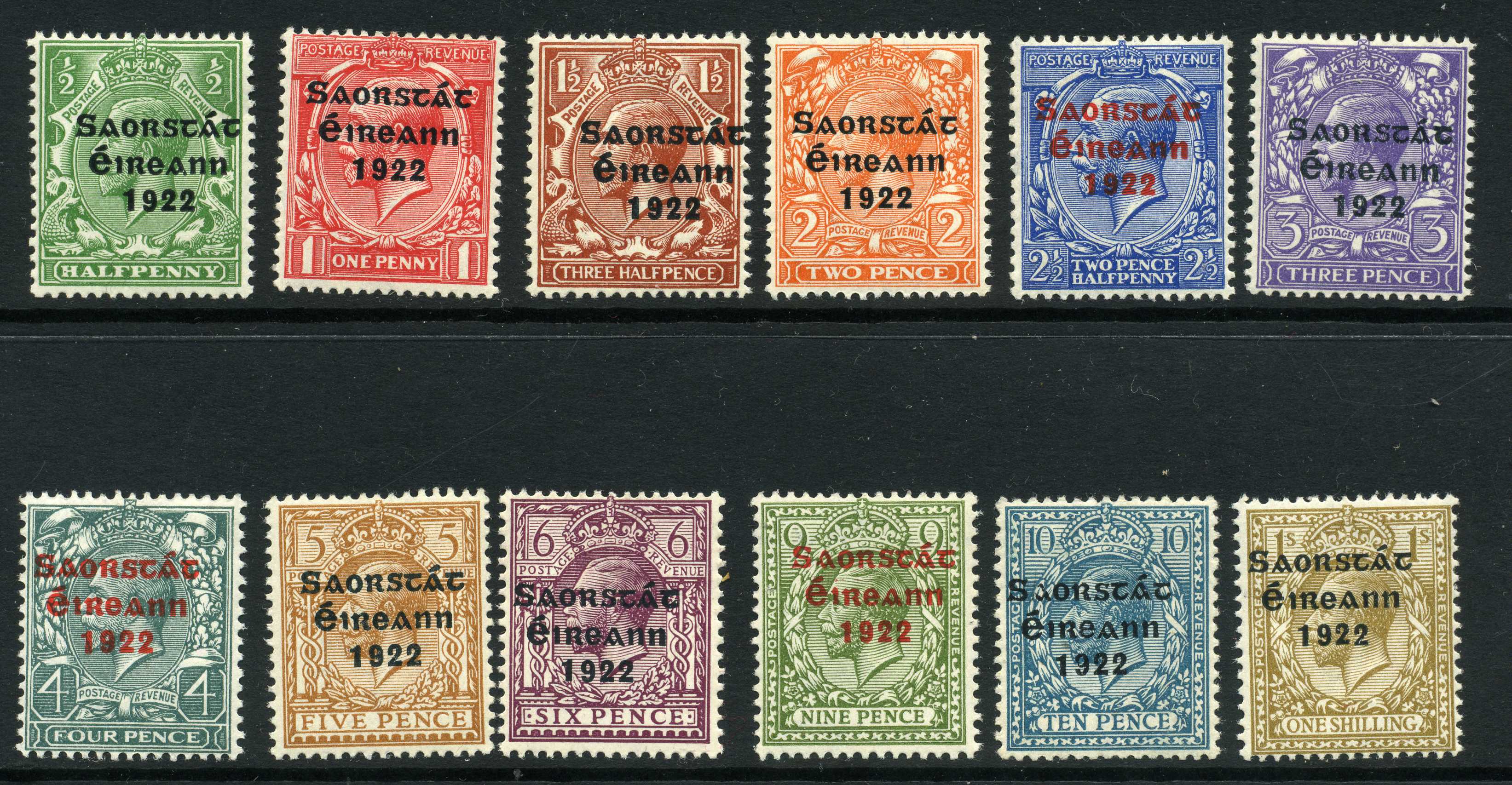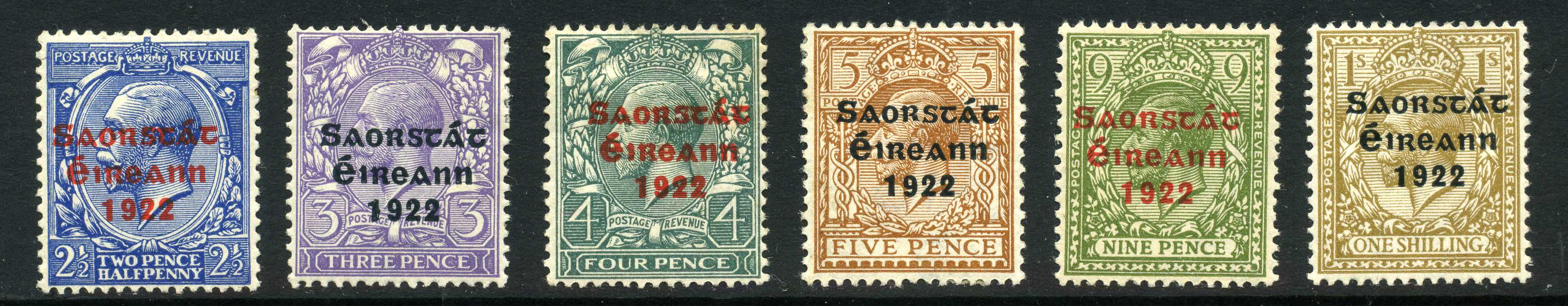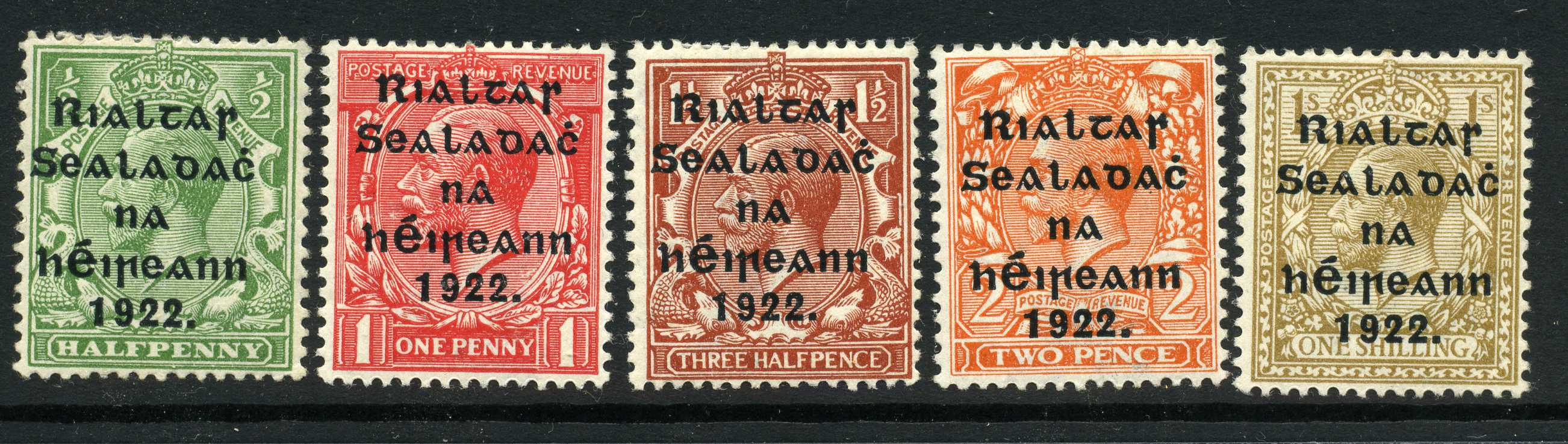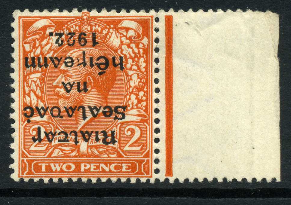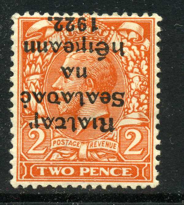 | 1922-3 Thom Saorstat 1 shilling value unmounted mint example with Offset of Overprint on reverse. |