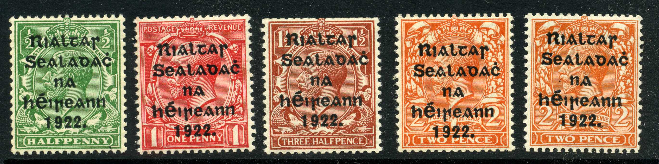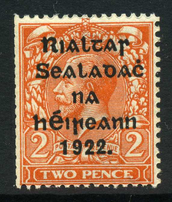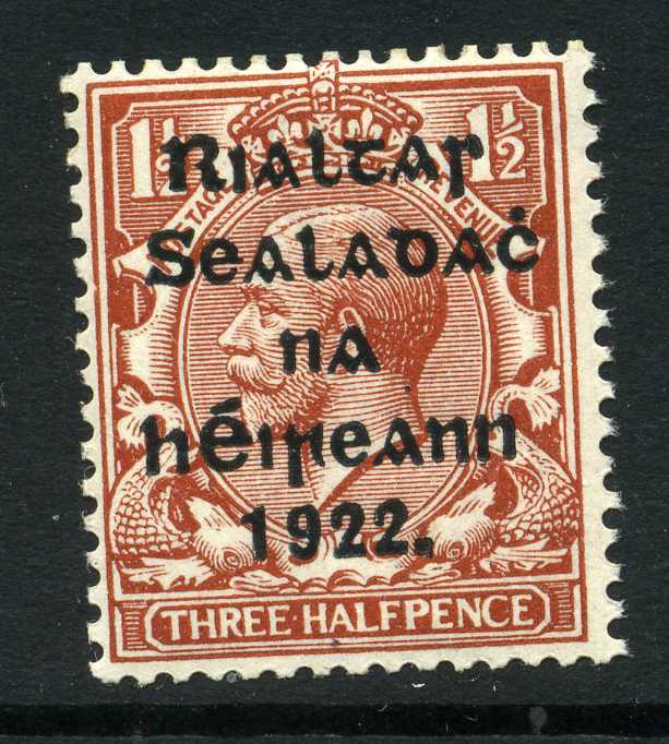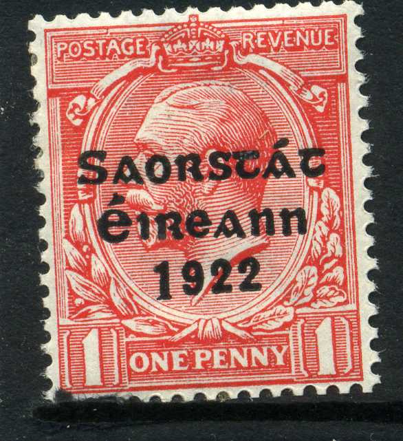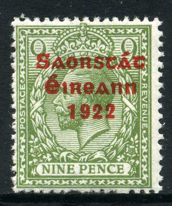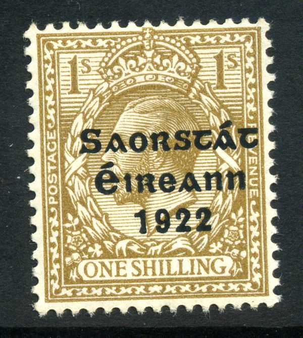 | 1922-3 Thom Saorstat 1 shilling value unmounted mint with offset of overprint on reverse. |