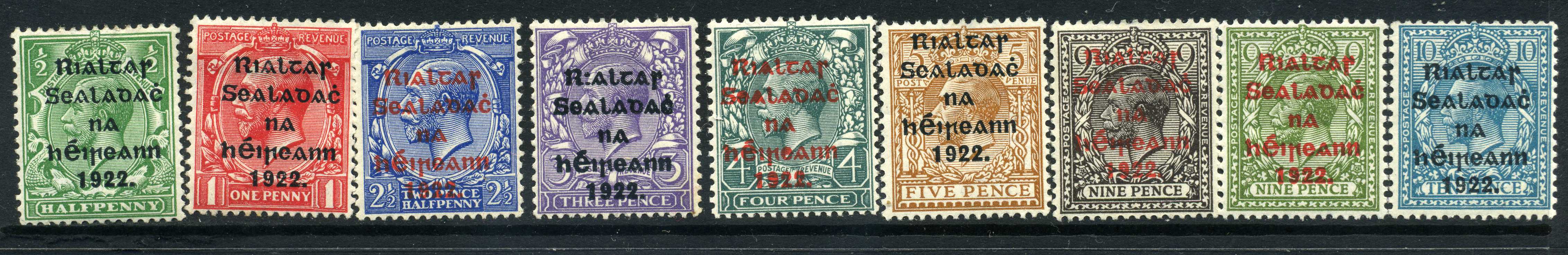 | 1922-3 Thom Saorstat 9d value unmounted mint variety with clear Offset of Overprint on reverse. Each |
