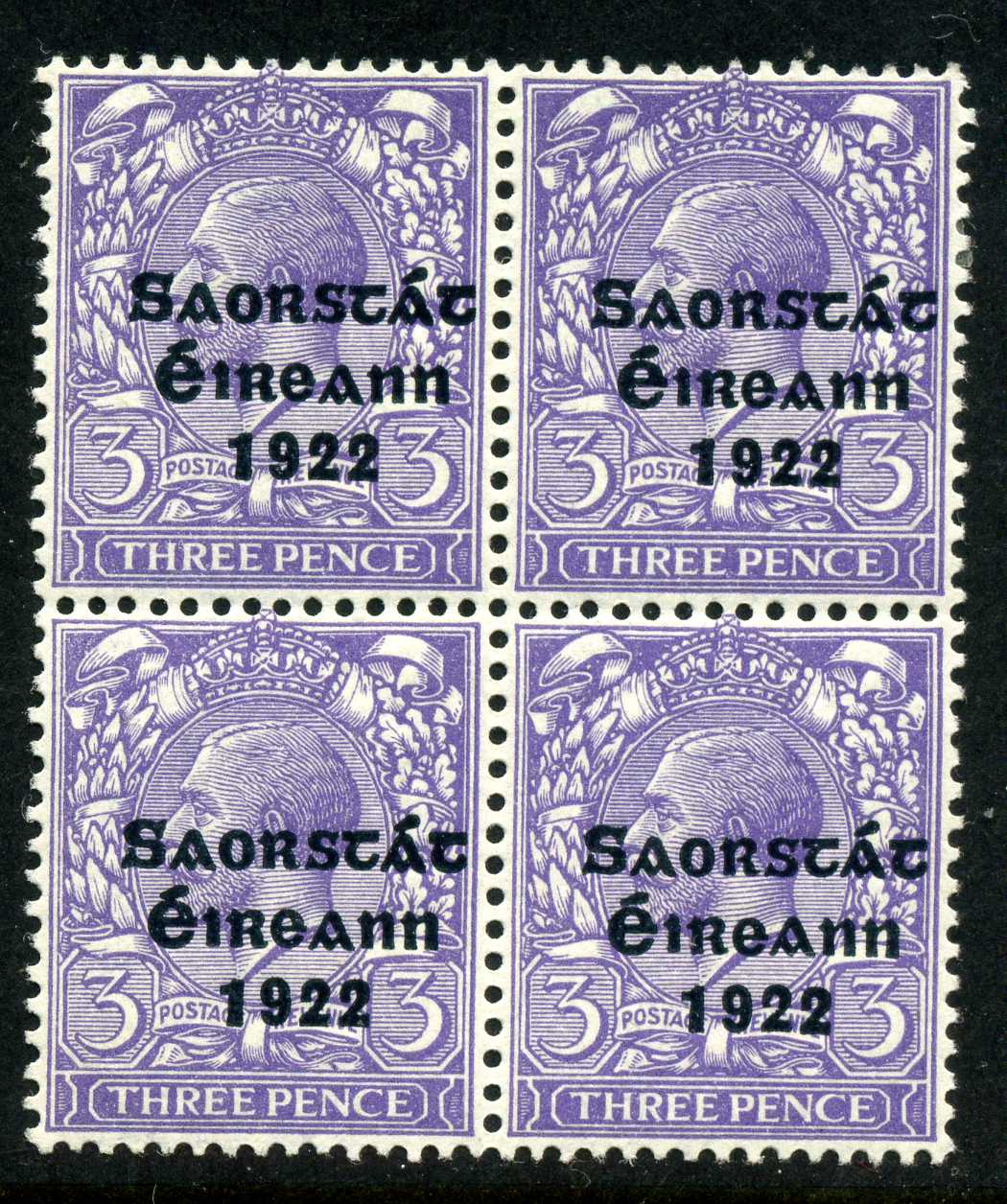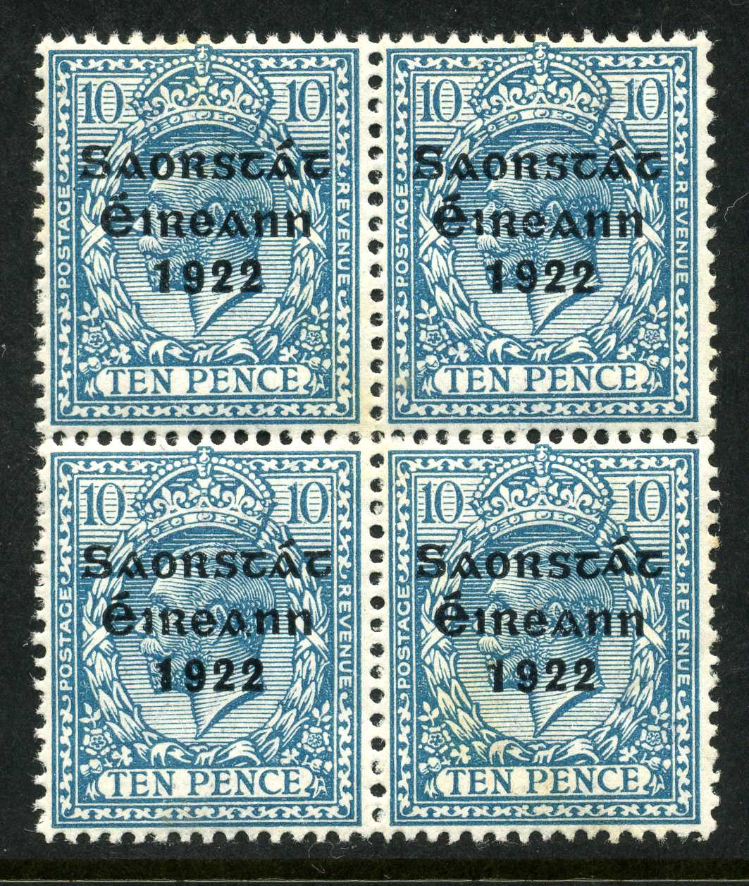 | 1922-3 Thom Saorstat 10d value unmounted mint block of 4. |