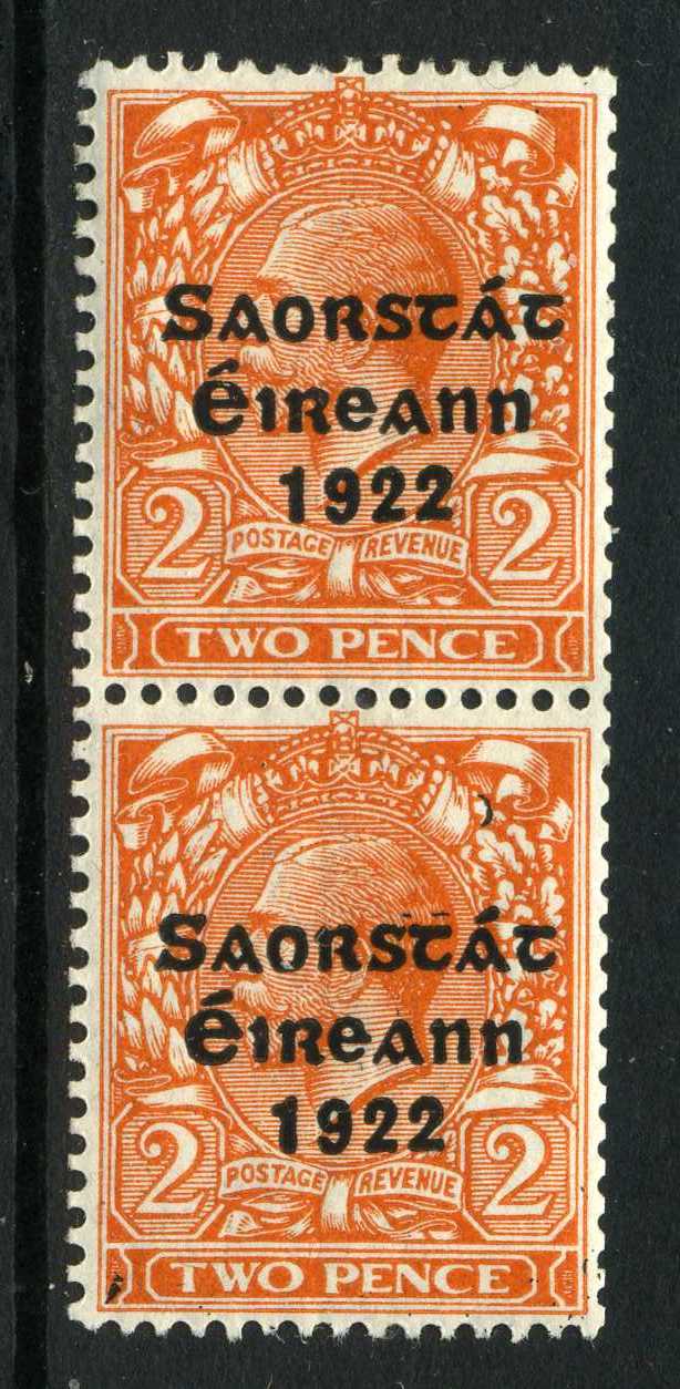 | 1923 Harrison Three Line Coil 2d value fine mint pair one stamp with Line over RST of Saorstat. |