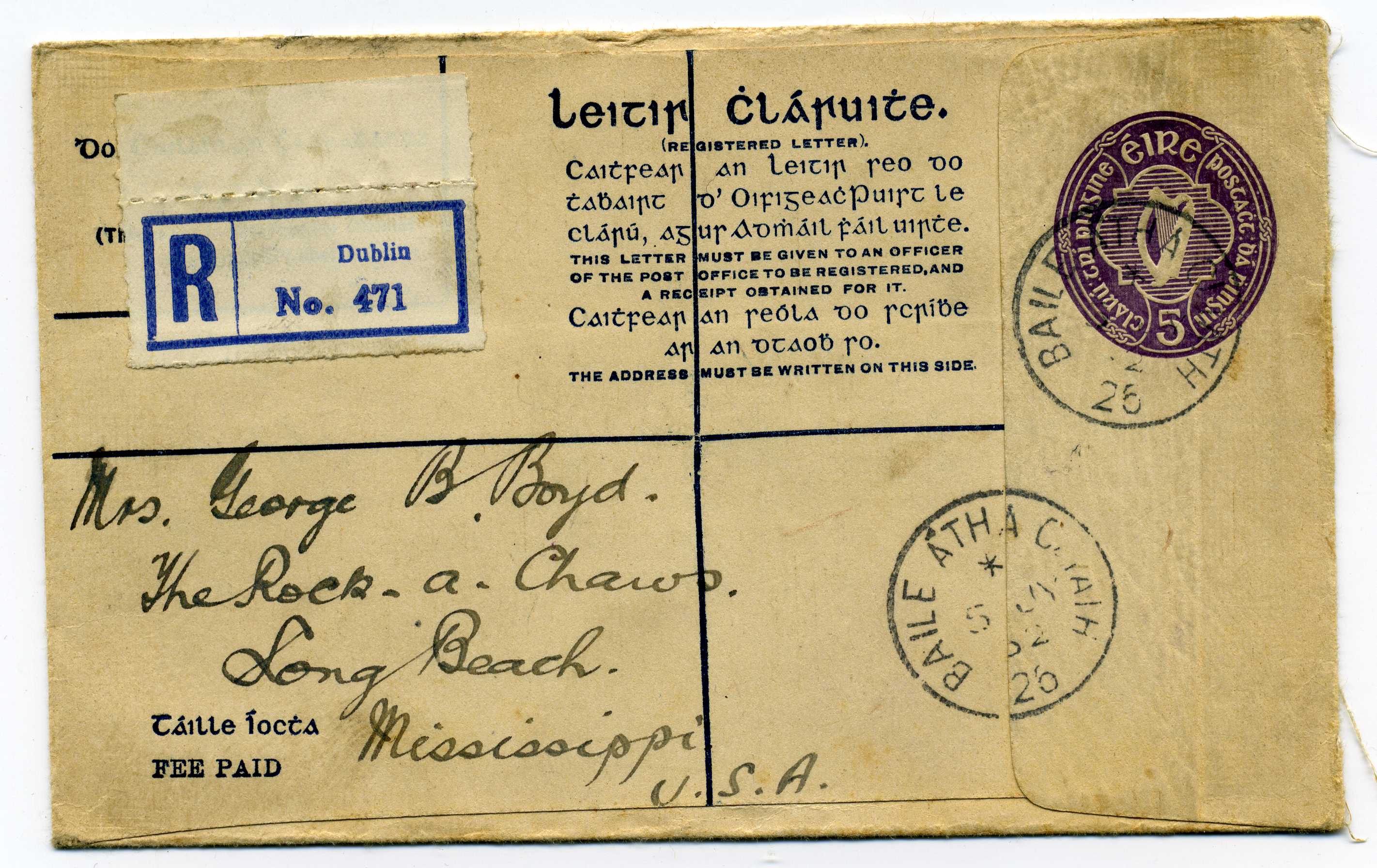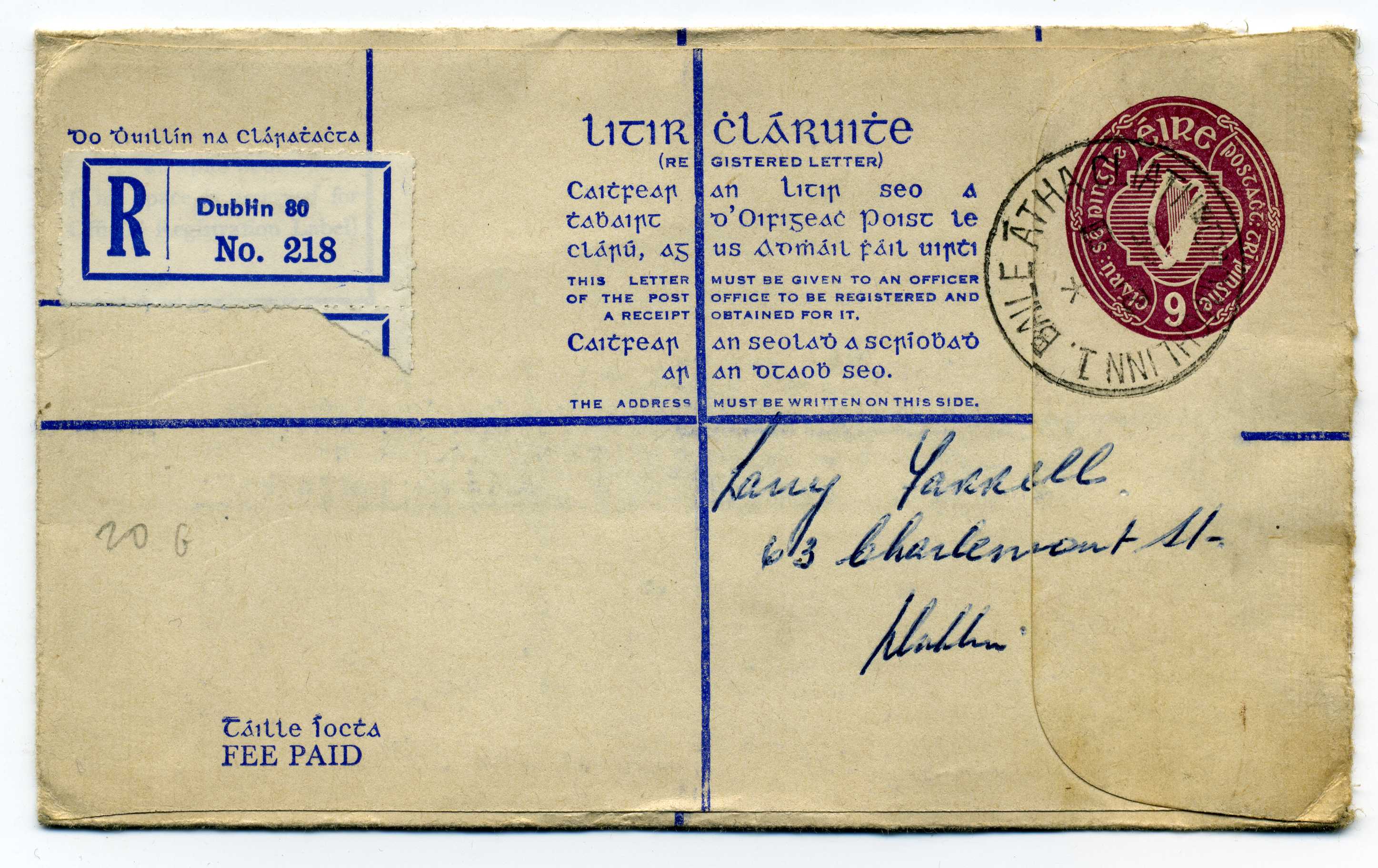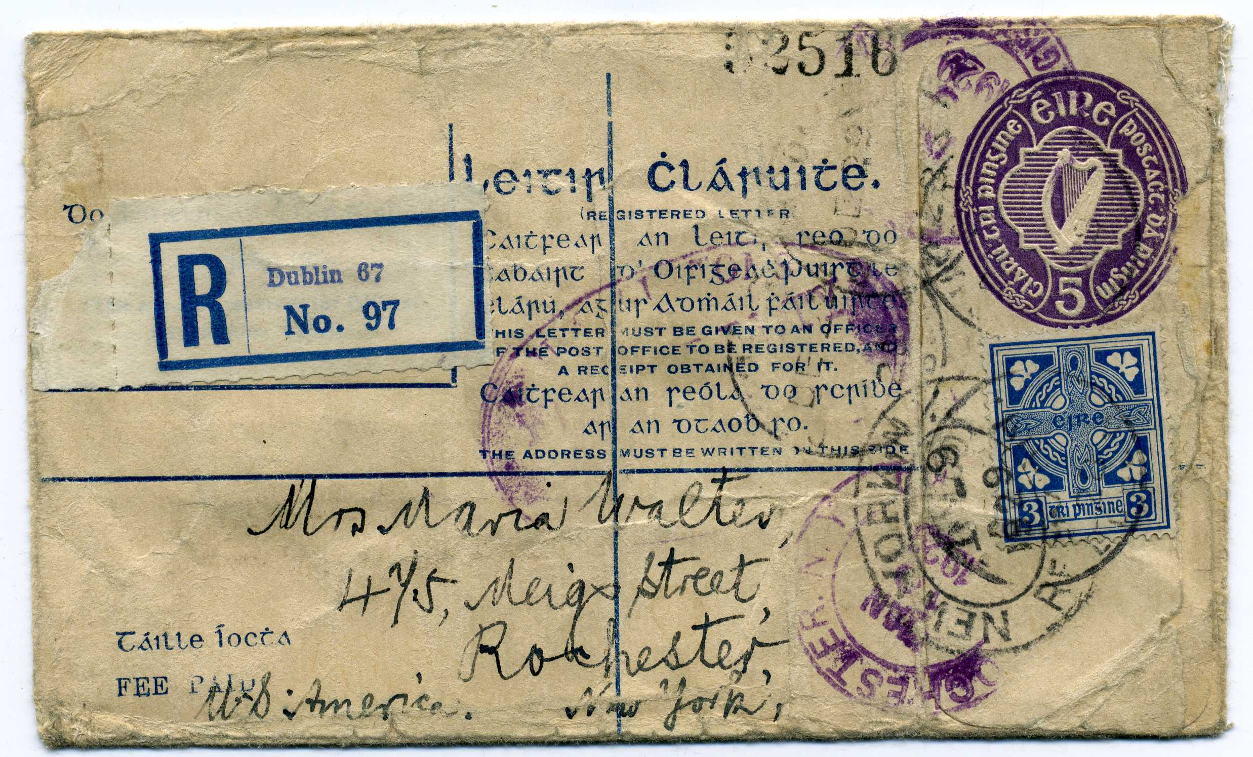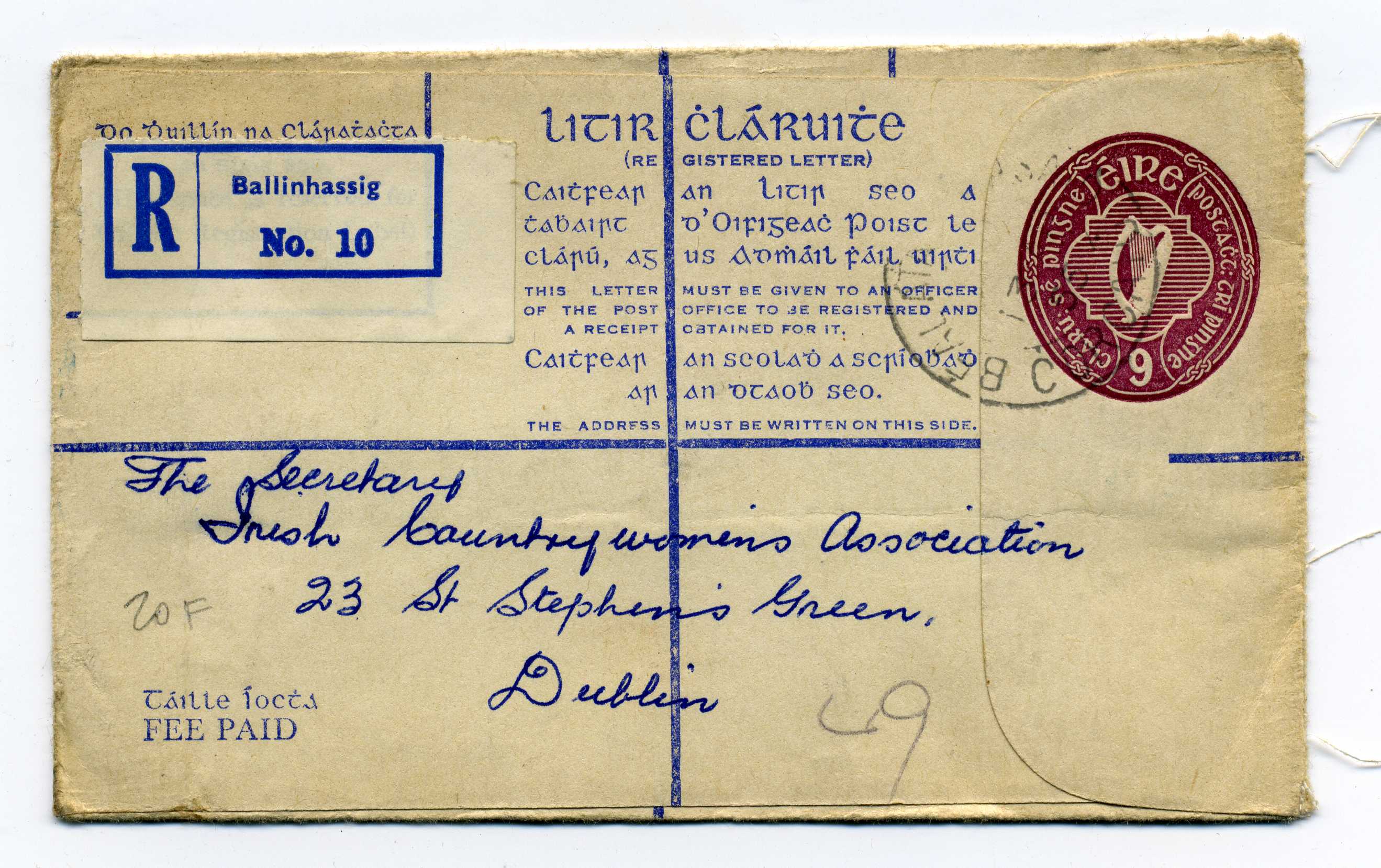 1902 Queen Victoria 2d Blue Postal Stationery Reg Envelope size F with additional 1d adhesive used to Dublin with Newtownstuart cds 3/5/02 40