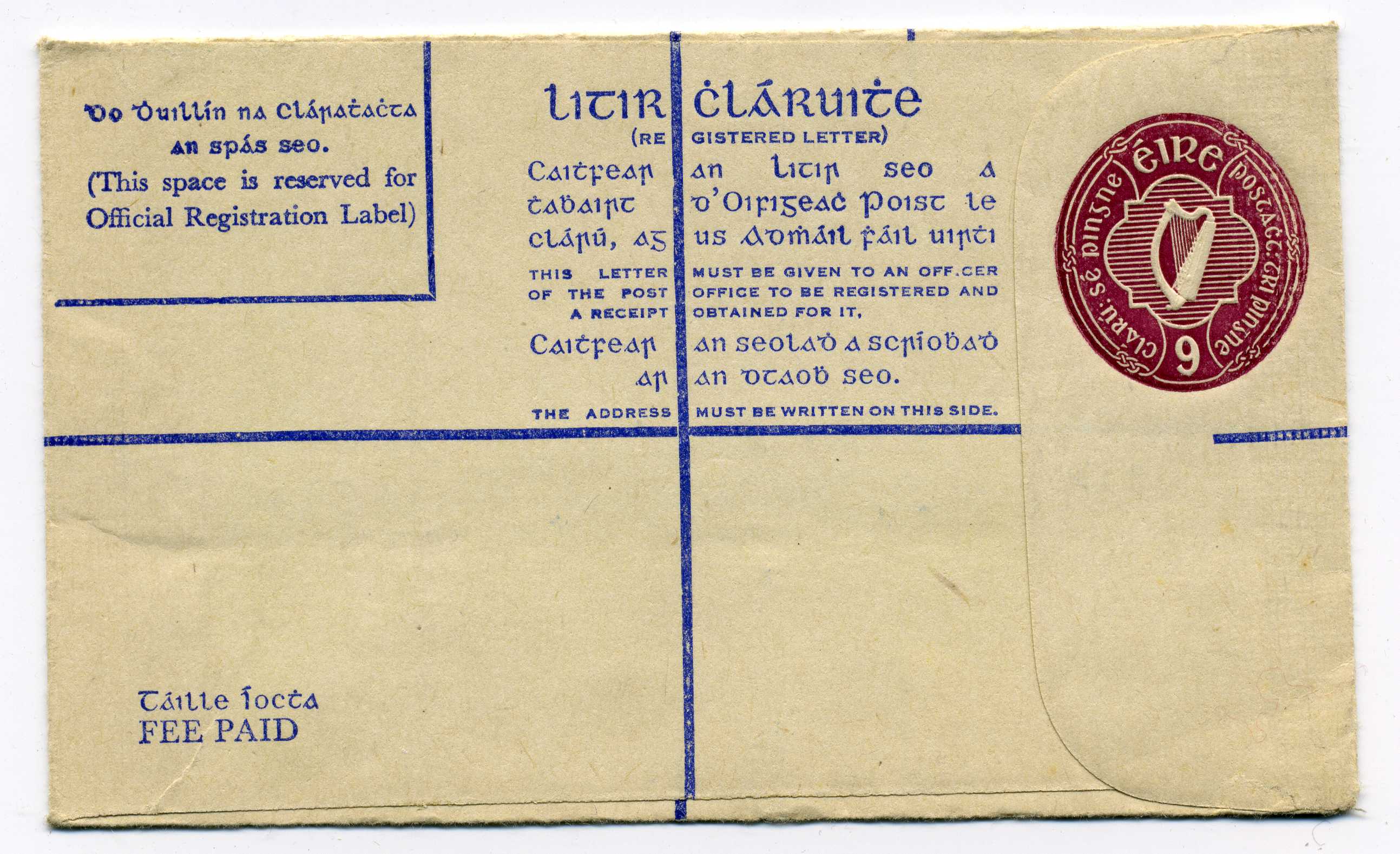 Registered Envelopes Sizes F and G